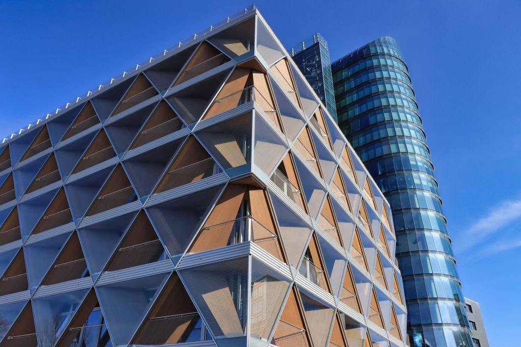 Und da ich gerade in der Landeshauptstadt war, habe ich mir noch das erste recyclingfähige Haus im Medienhafen angesehen. The Cradle (englisch für Wiege) heißt das Haus und ist, wie man liest, weitgehend aus Holzbauteilen, die in der Nähe gefertigt werden, entstanden. Sowohl aus Umweltsicht als auch fotografisch ein tolles neues Highlight in Düsseldorf. Unten herum sah es noch nach Baustelle aus, aber das wird sicher bald. Mehr Fotos? Dann schaut mal hier bei Flickr oder Google Photos vorbei.