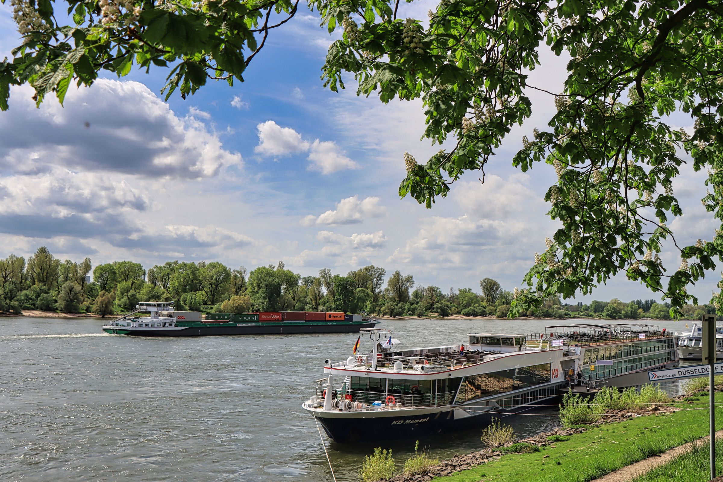 Nachdem ich mich dann doch lösen konnte, bin ich noch über die Straße, wo hinter der Zufahrt zur Messe gleich der Rheindeich beginnt. Während ich etwas gedankenverloren auf das Wasser blicke, höre ich plötzlich ein „Määääh“. Ich mache einen Schritt nach vorne, schaue hinter die Deichmauer und erblicke eine ganze Schafherde incl. des Nachwuchses. Kleine Lämmchen guckten mir sozusagen direkt neugierig in die Kamera. Da mußte ich natürlich auf den Auslöser drücken. Sind sie nicht süß? Wie immer gibt es diese und ein paar weitere Bilder bei Flickr und Google Photos.