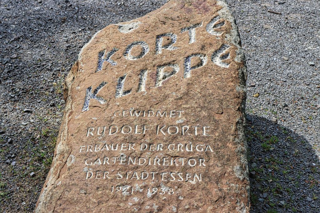 Der 1. Mai bot sich hervorragend an, kein angesagter Regen, 26 Grad und Sonnenschein. Lediglich der Saharasand trübte die Aussicht etwas. Um 10.30 Uhr waren die meisten Parkplätze oberhalb des Seaside Beach noch frei. Also das Auto abgestellt und auf den Weg gemacht. Vorbei am Strandbad geht der Weg alsbald bergauf in Richtung Schwarze Lene, die seit einigen Jahren Chicago Steakhouse heißt. Ich überquere den Parkplatz und verschwinde links davon wieder im Wald. Es geht weiter bergauf, ein Teil des Baldeneysteigs. Nach einer Weggabelung, die mit einer Wandertafel ausgestattet ist, erreiche ich die Straße im Schellenberger Wald. Wenige Meter rechts und ich komme an die Korte Klippe.