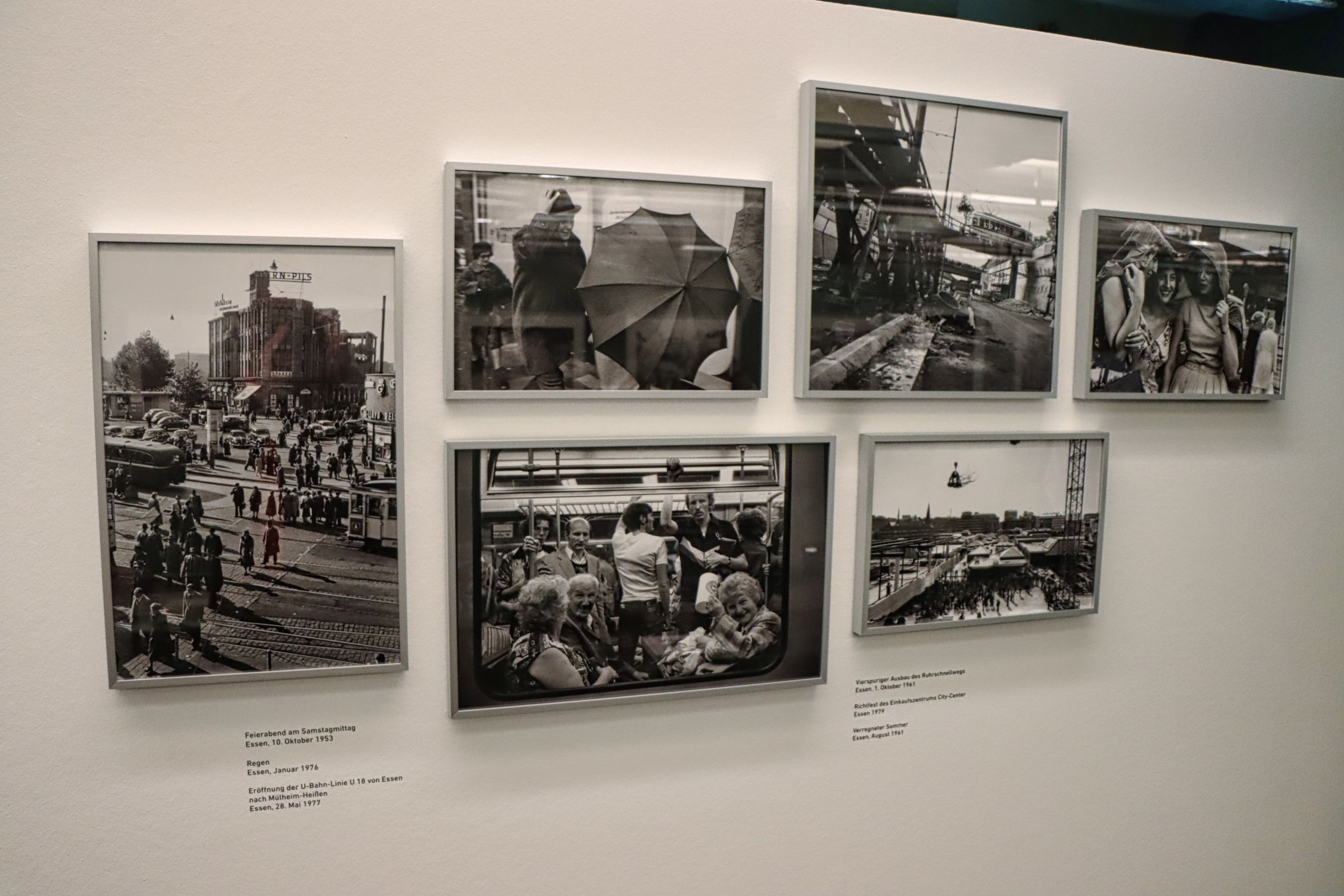 Dann ging es noch für einen Abstecher in die Galerie auf der 21-Meter-Ebene der Zeche Zollverein. „Unterwegs mit Marga Klinger“ heißt die Ausstellung und zeigt Bilder, die sie in Ausübung ihres Berufs gemacht hat. Sie war von 1951 – 1991 Pressefotografin für die WAZ in Essen und im Ruhrgebiet. Nun ja, die Fotos zeigen 40 Jahre Zeitgeschehen und sind vor allem noch 100% analog gemacht worden. Mal Politiker wie Willi Brandt oder John F. Kennedy, mal Damen beim Minigolf, Sportler beim Training oder die Polizei bei der Unfallaufnahme. Lokaljournalismus eben. Man muß sich schon dafür interessieren.