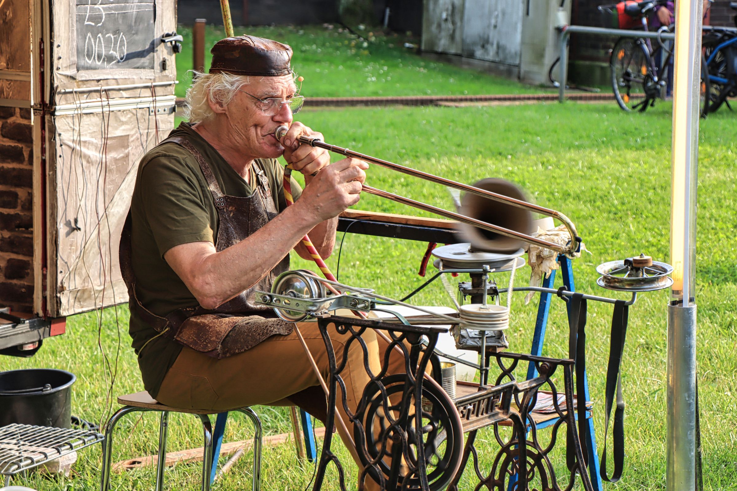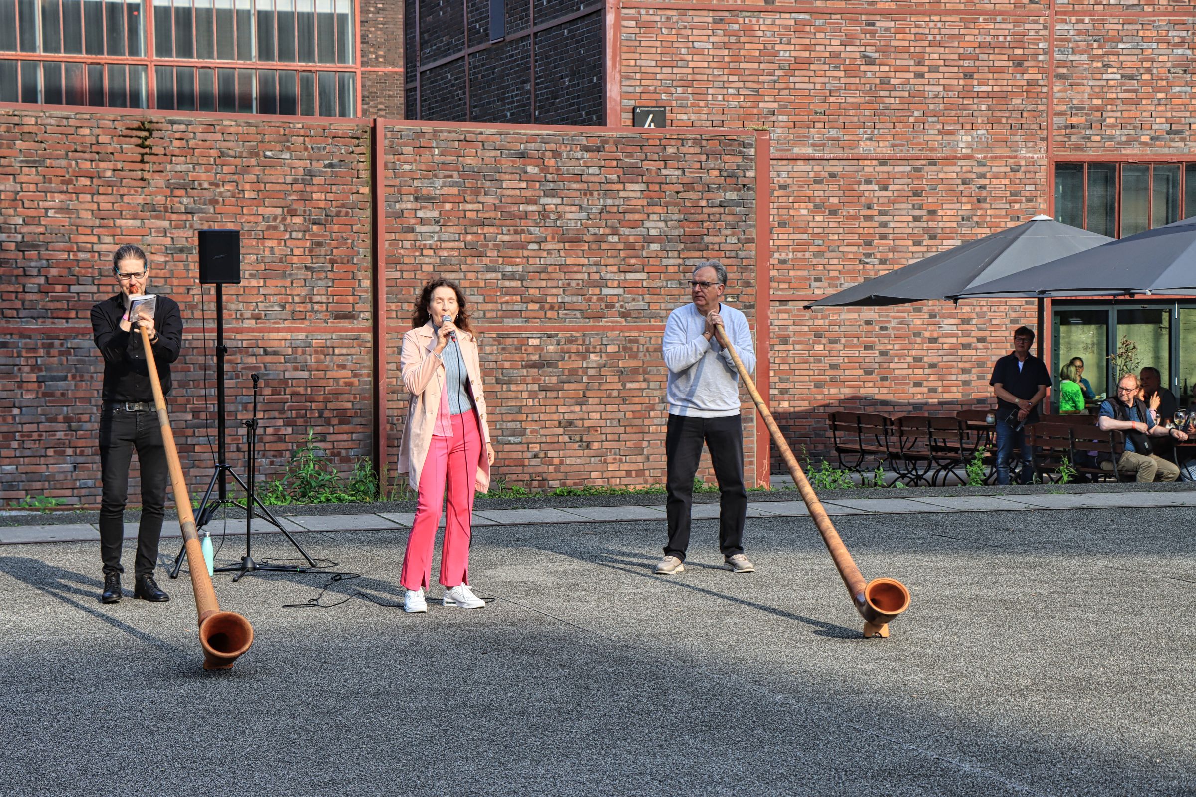 Während Dundu und die illuminierten Blumen im Ehrenhof zu sehen waren, spielte auf dem Vorplatz die Gruppe Alpcologne zweitweise (mit zwei Personen) auf drei Alphörnern, während eine Ecke weiter der musikalische Schmied Marius Broeders mit allerlei Krimskrams aus dem Bastelkeller seltsame Experimente und musikalische Darbietungen zum Besten gab. Auch der WDR war mit Stefan Göke in der Sendung Lokalzeit am Samstag vor Ort. Während einer Kurzführung durch die Zeche, habe ich mein Wissen über die Arbeit über und unter Tage aufgefrischt.