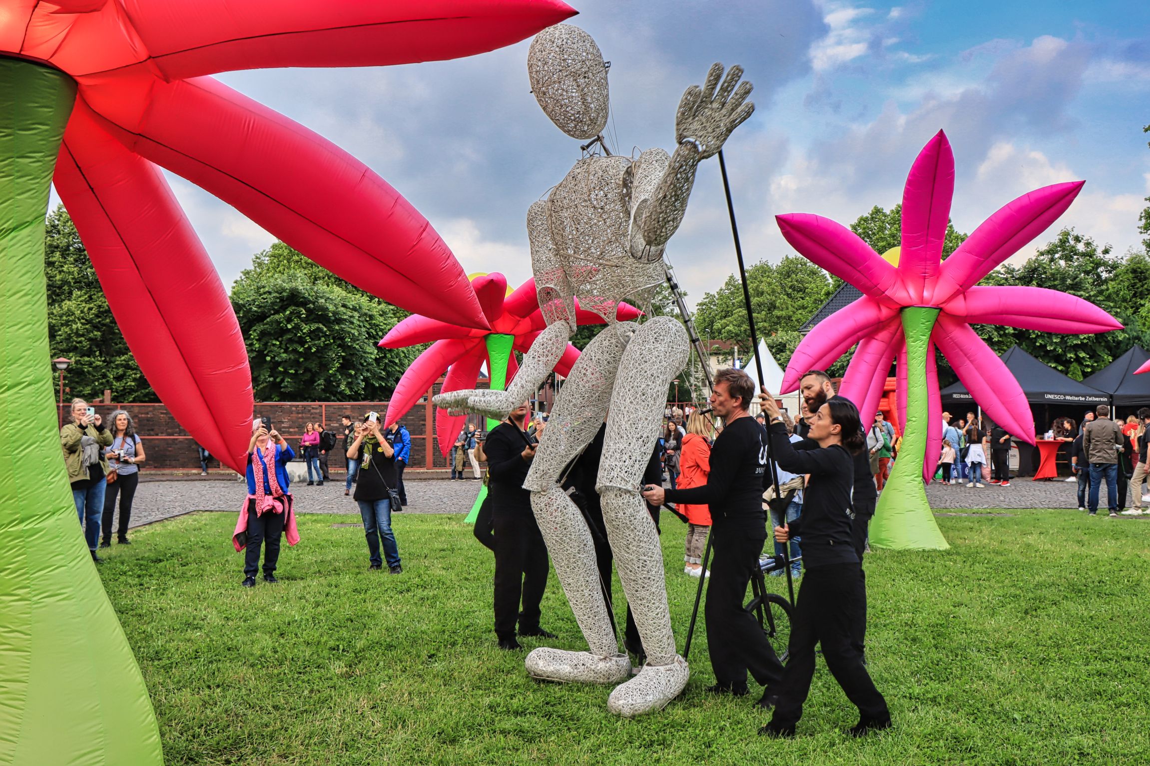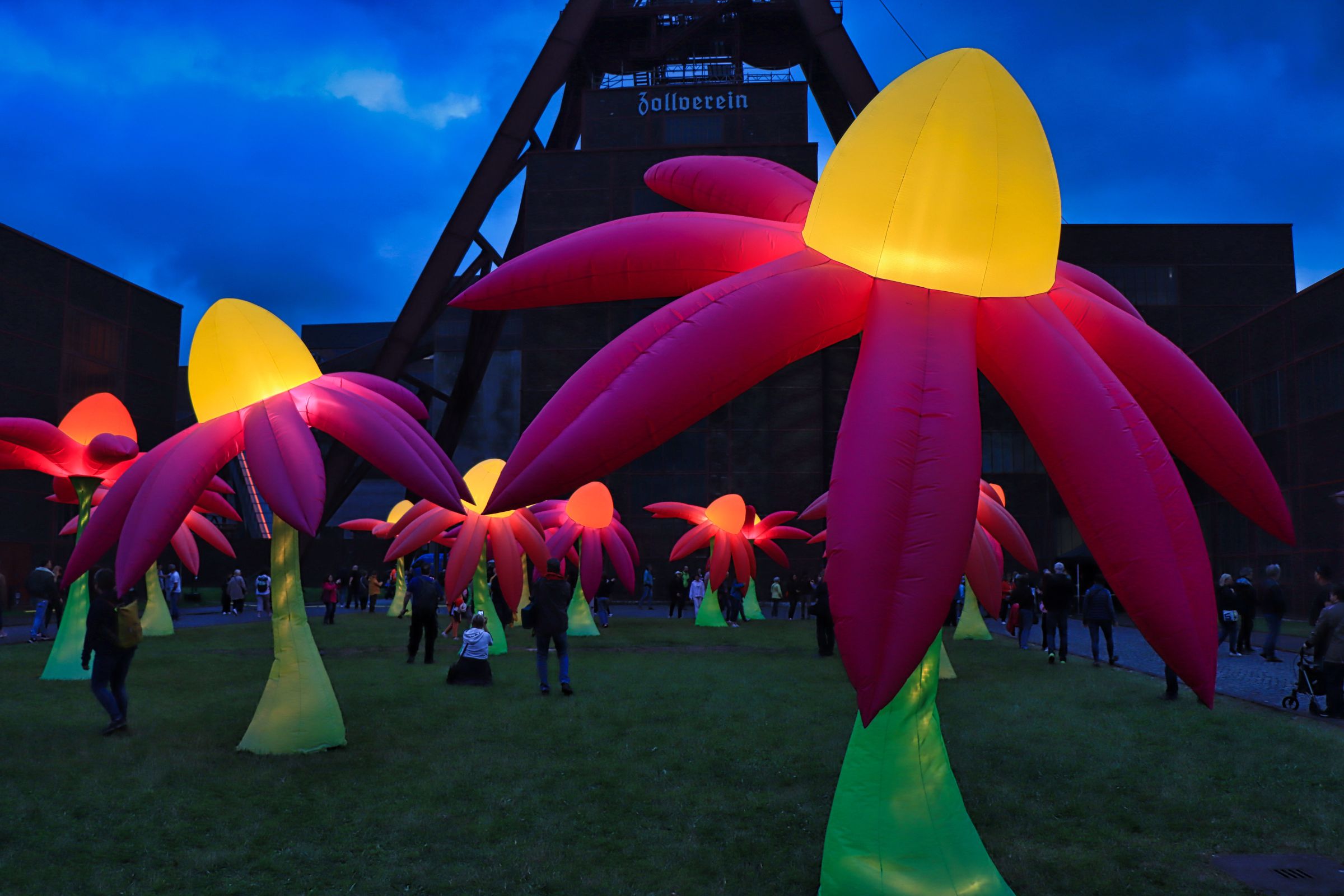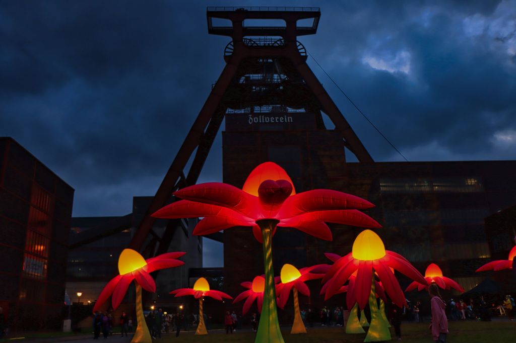 Das heißt ihr bekommt mit diesem Blogbeitrag gleich zwei Highlights auf einmal. Dank Feiertag am Donnerstag, wurde gleich ein ganzes Wochenende durchgefeiert. Familientag, Unesco Welterbetag, dazu das beste aus bisherigen Extraschichten in der Extraschicht 2024. Häufigeren Besuchern dürfte die Blumenwiese vom Illuministen Peter Grotz bekannt vorkommen, dazu die überlebensgroße Puppe Dundu , ein nostalgisches Karussell u.v.m. Den Familientag am Donnerstag habe ich genutzt den Museen auf Zollverein einen Besuch abzustatten, einen Blick auf das Ergebnis des Fotowettbewerbs „25 Jahre Leben und Industriekultur“ zu werfen und den neuen 360 Grad Film anzusehen.