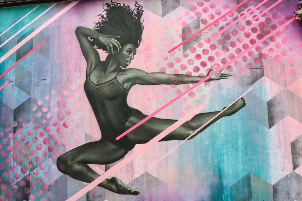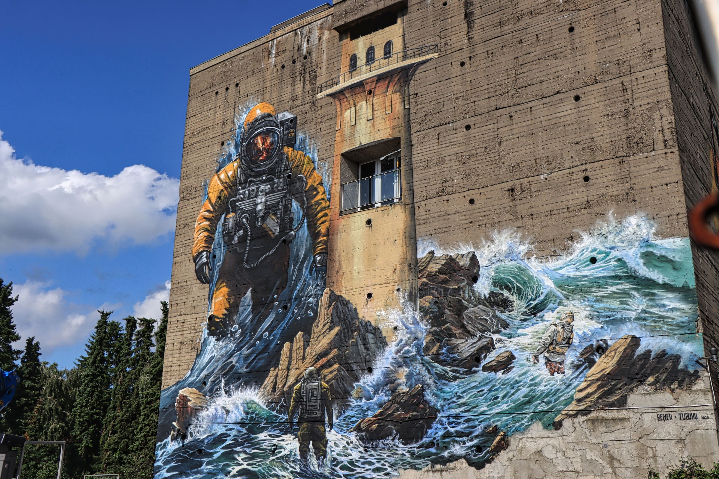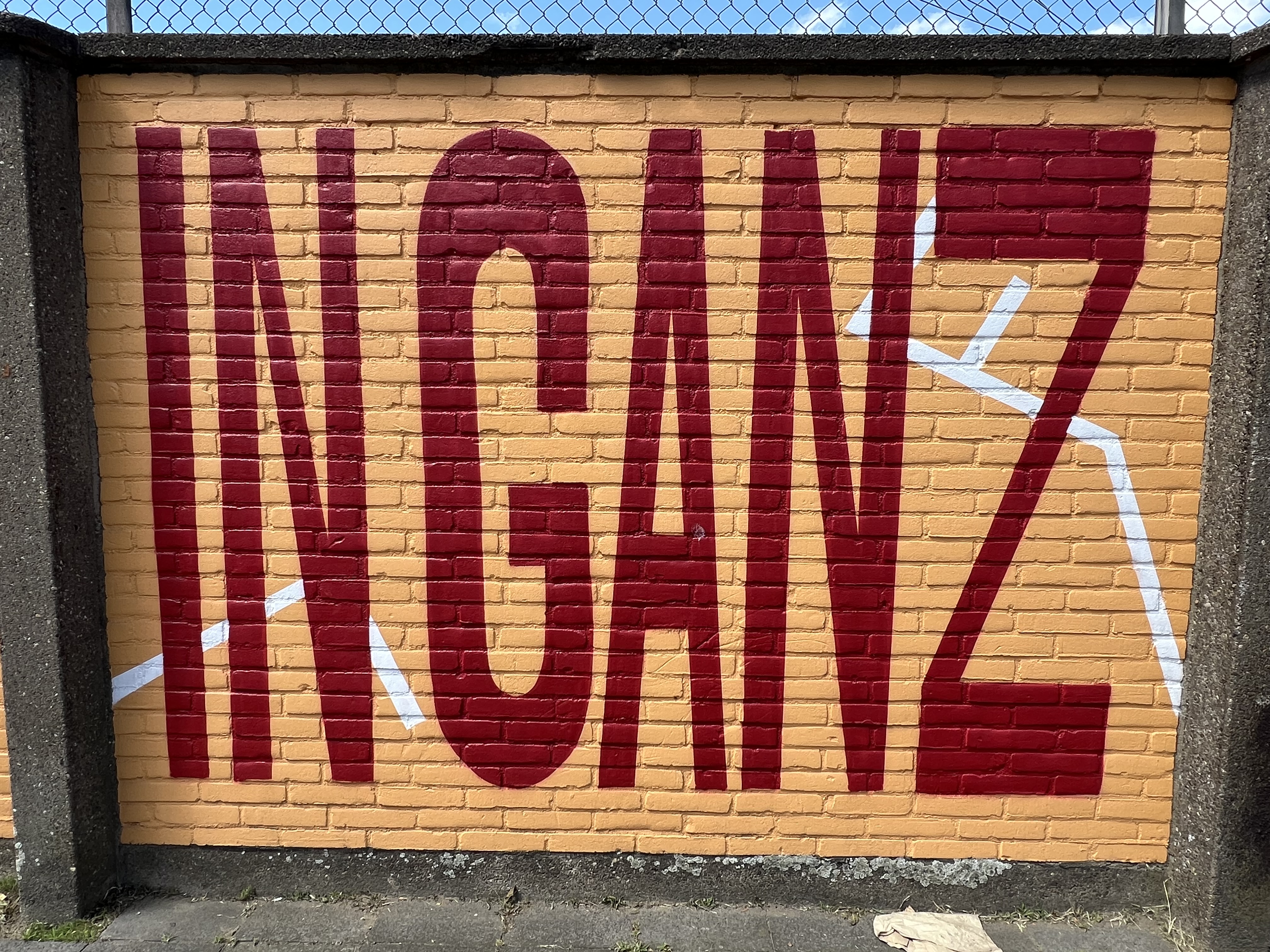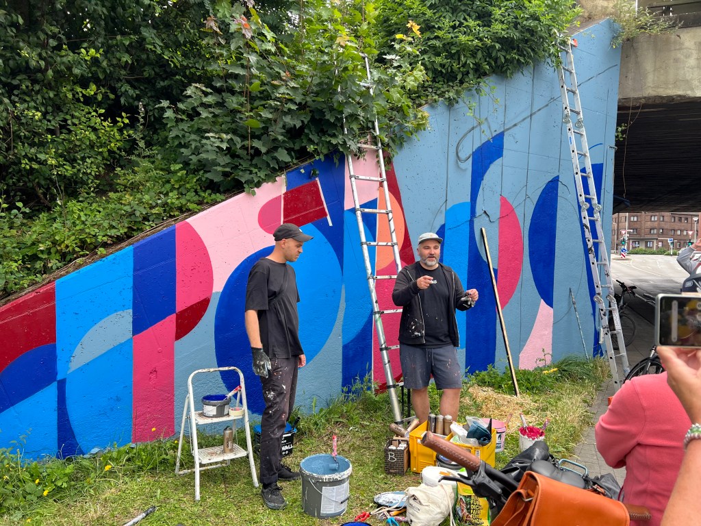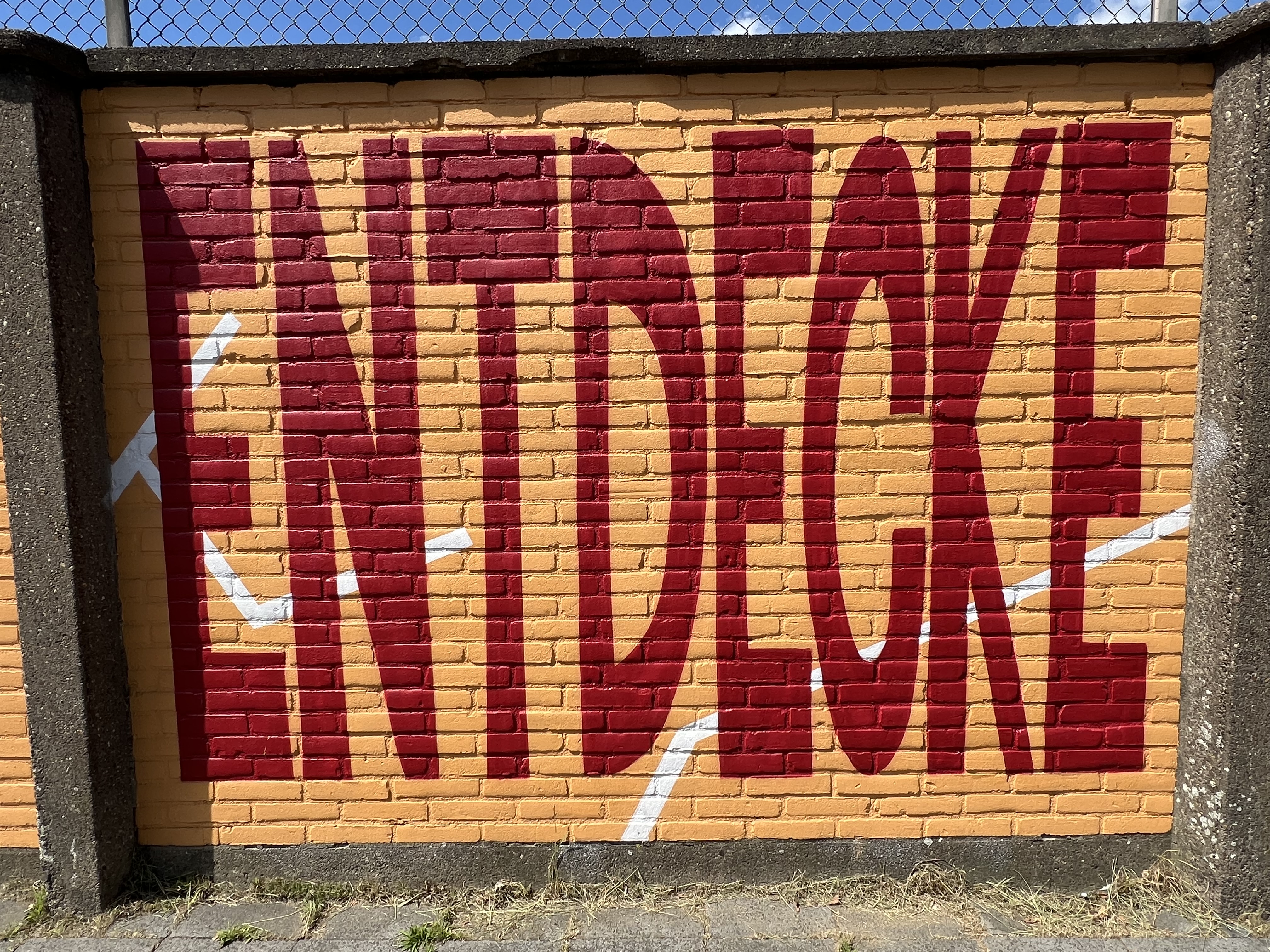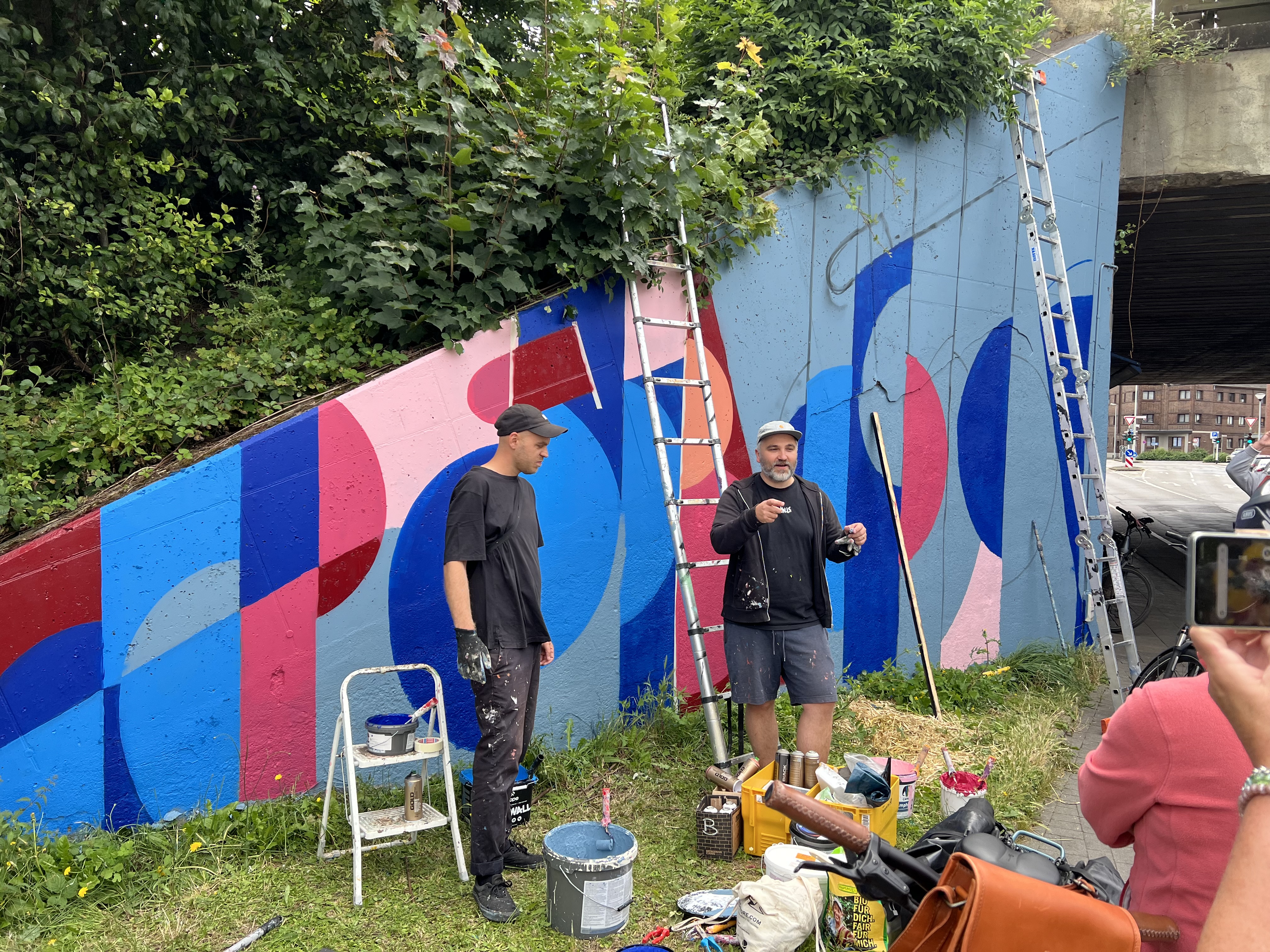 Über einen Stopp am Seidenweberhaus und an der Königstraße ging es über den Norwall zu einem nagelneuen Wandbild von Gizem Erdem, das an der Dionysiusstr. 60 noch in Arbeit war. Als wir über die Westparkstr. links abbiegen, wird es für einen Moment ländlich, obwohl wir eigentlich noch fast mitten in der Stadt sind. Auf dem Firmengrundstück von ReGINerate (der GIN aus Krefeld) wurde soviel neues gemalt, ich habe nicht mal geschafft alles zu fotografieren. Die angepeilte Zeit von 2 Stunden ist mittlerweile schon überschritten, aber es gibt noch mehr.
