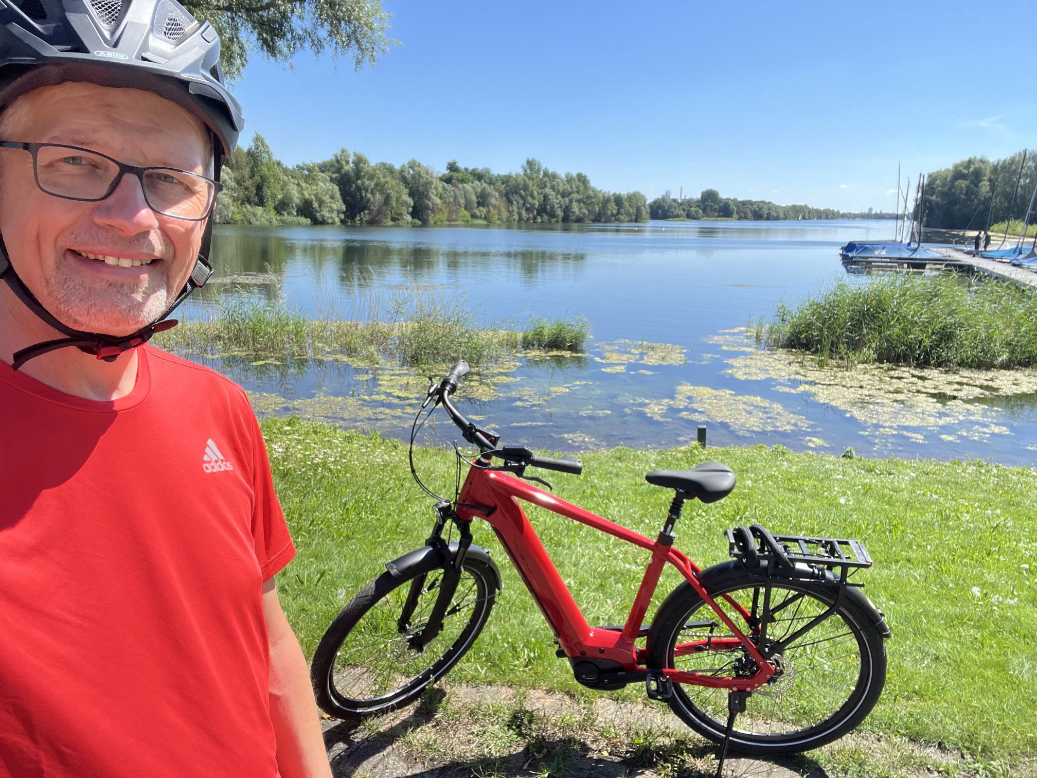 Die erste Testfahrt hat mich quer durch Krefeld geführt (Radschnellweg, Burg Linn, Elfrather See, Egelsberg, Niepkuhlenbrücke) und die vier Modi Eco, Tour+, Sport und Turbo, schieben das Rad gut an. Gerade an der Ampel kann sich der Tour+ Modus (eine Art Automatik zwischen Eco und Sport) sehen lassen. Dazu noch eine Fahrradtasche (von Otinga), die sich zum Rucksack umbauen läßt und natürlich ein Fahrradhelm. Ach ja, wo ich das Rad gekauft habe, wollt ihr vielleicht noch wissen. Im Laden der e-motion e-Bike Welt Krefeld. Freundliche Bedienung, gute Beratung mit Tipps ohne zu überreden (ich lasse mich nämlich ungerne zu Dingen überreden), und nein das ist unbezahlte Werbung, mir hat der Laden wirklich gefallen.