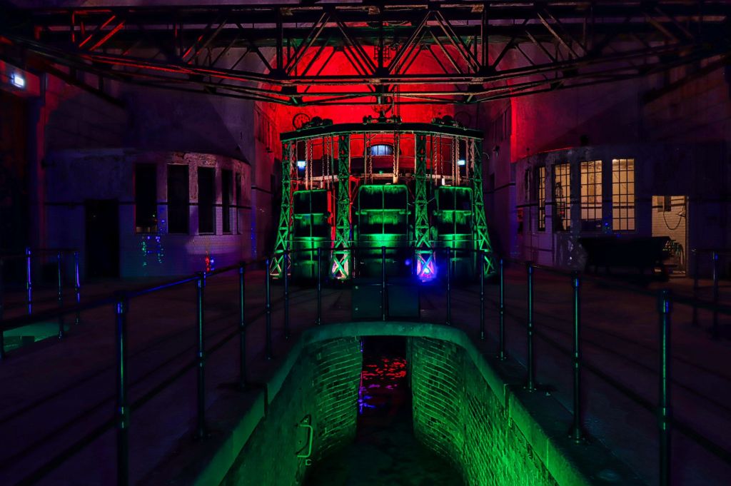 Einige Gebäude, darunter das Haus der Textilindustrie, haben sich mittlerweile zu Bürogebäuden gewandelt, so daß es dort eher weniger zu sehen gibt. Dafür waren u.a. das historische Klärwerk in Krefeld Uerdingen, der Wasserturm an der Gutenbergstraße oder besagtes Haus der Seidenkultur meine Ziele. Außerdem war ich in Düsseldorf auf dem alten Betriebshof der Rheinbahn, der heute ein kleines Museum der „Linie D“ ist. Aber der Reihe nach. Das historische Klärwerk hatte zum Glück bereits am Vortag des Denkmaltages geöffnet und das sogar mit Illumination.