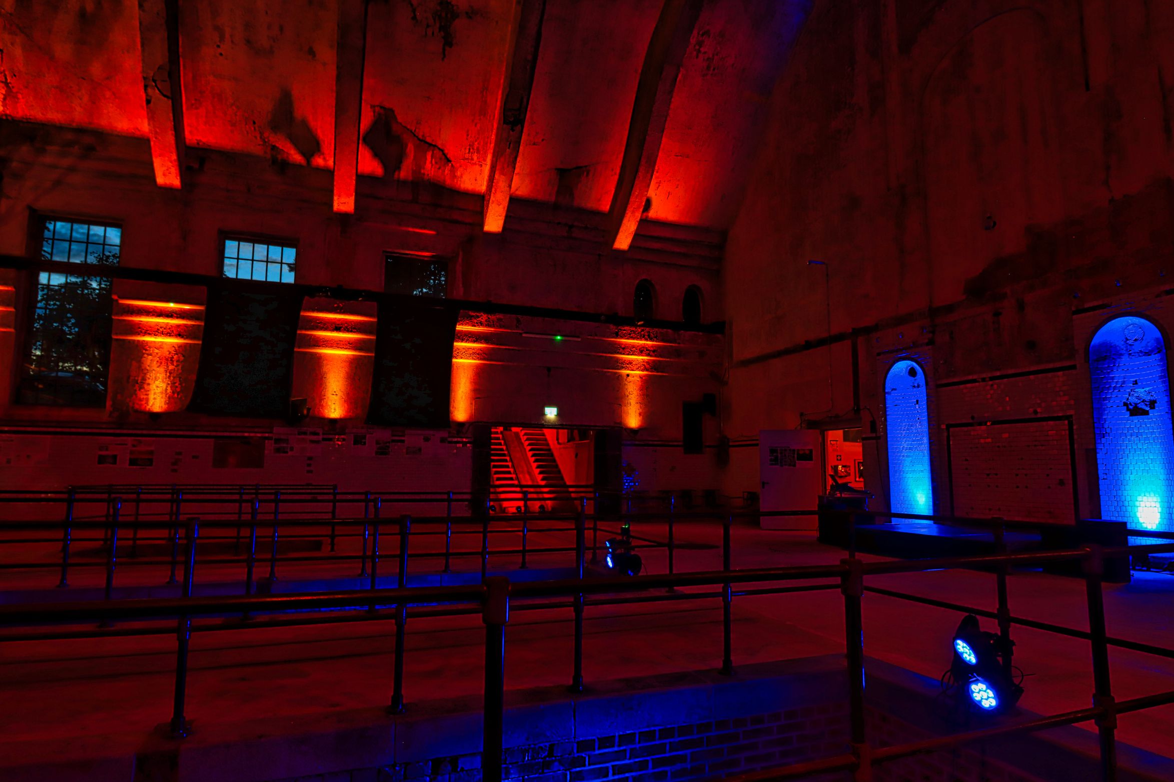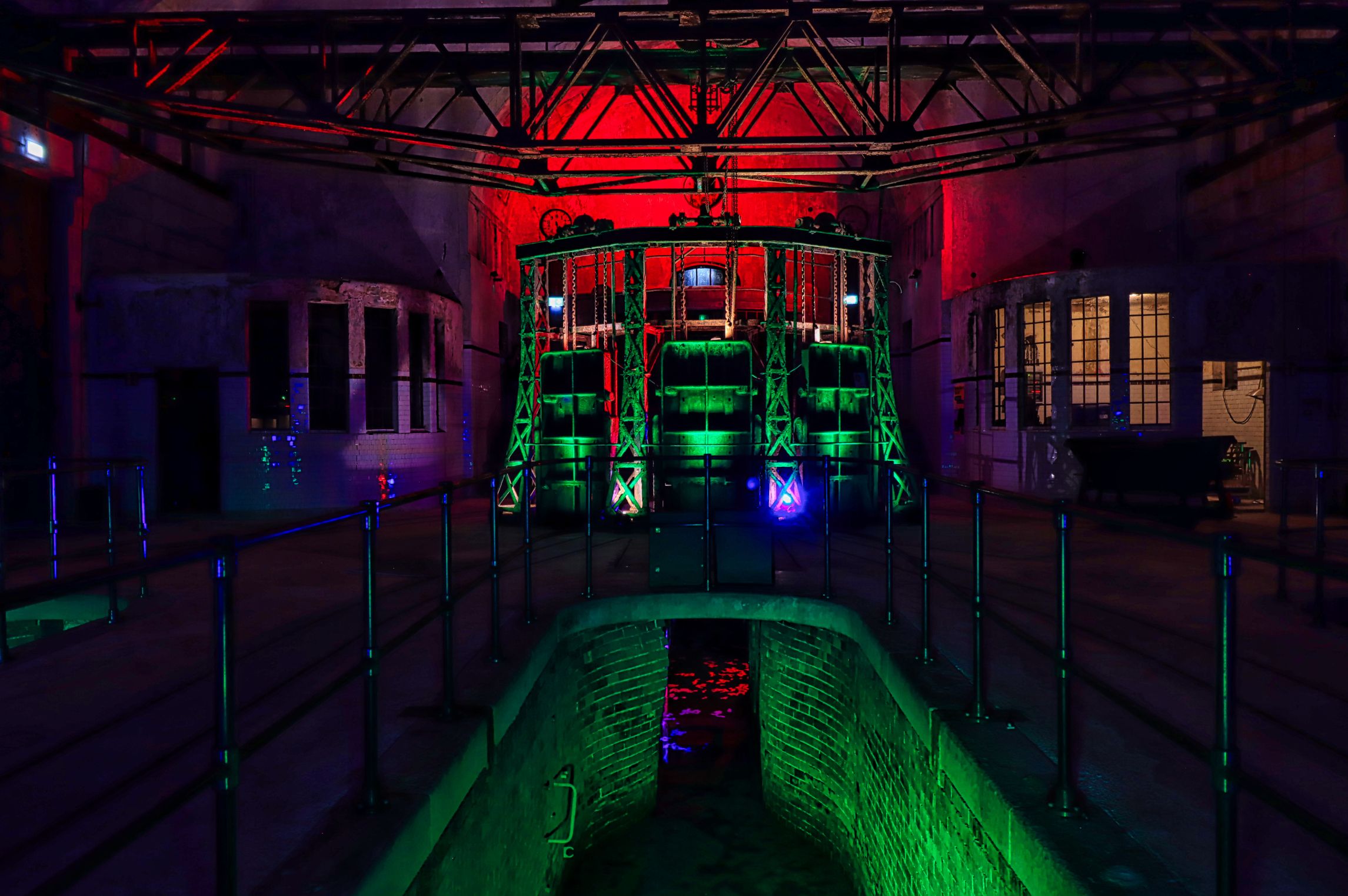 Einige Gebäude, darunter das Haus der Textilindustrie, haben sich mittlerweile zu Bürogebäuden gewandelt, so daß es dort eher weniger zu sehen gibt. Dafür waren u.a. das historische Klärwerk in Krefeld Uerdingen, der Wasserturm an der Gutenbergstraße oder besagtes Haus der Seidenkultur meine Ziele. Außerdem war ich in Düsseldorf auf dem alten Betriebshof der Rheinbahn, der heute ein kleines Museum der „Linie D“ ist. Aber der Reihe nach. Das historische Klärwerk hatte zum Glück bereits am Vortag des Denkmaltages geöffnet und das sogar mit Illumination.
