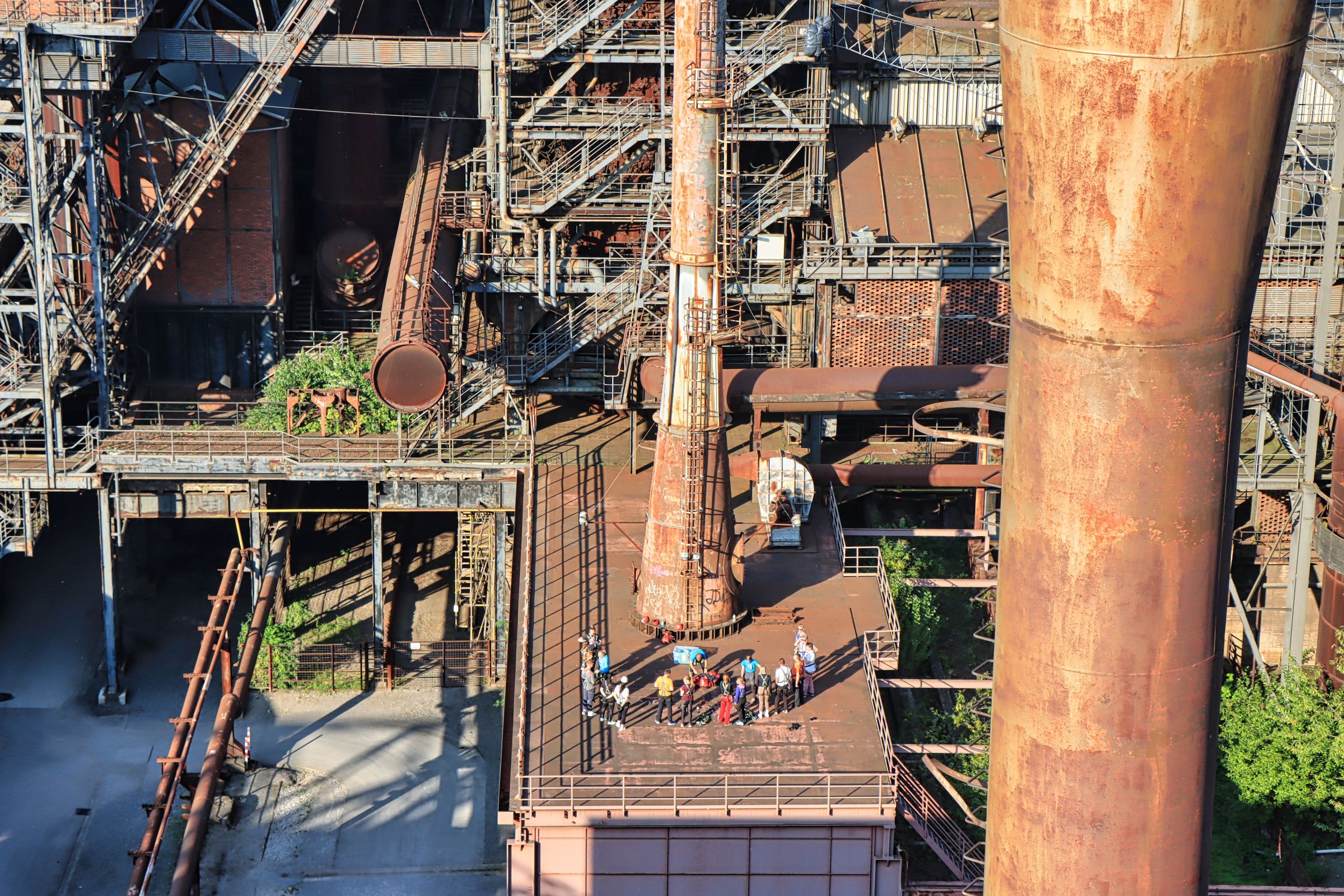 Die Fläche der 1901 gegründeten „Rheinischen Stahlwerke zu Meiderich bei Ruhrort“ ist riesig. Insgesamt gab es in dem Hüttenwerk fünf Hochöfen, die lt. Wikipedia, in ihren 84 Jahren 37 Millionen Tonnen Spezialroheisen produzierten. Während die Hochöfen 3 und 4 bereits 1968 bzw. 1970 abgerissen und die Hochöfen 1 und 2 im Jahr 1982 stillgelegt wurden, kann der 1973 erbaute Hochofen 5 (stillgelegt 1985) bekanntlich bestiegen werden. Seit dem Jahr 2000 stehen die Anlagen im Landschaftspark Duisburg Nord unter Denkmalschutz.