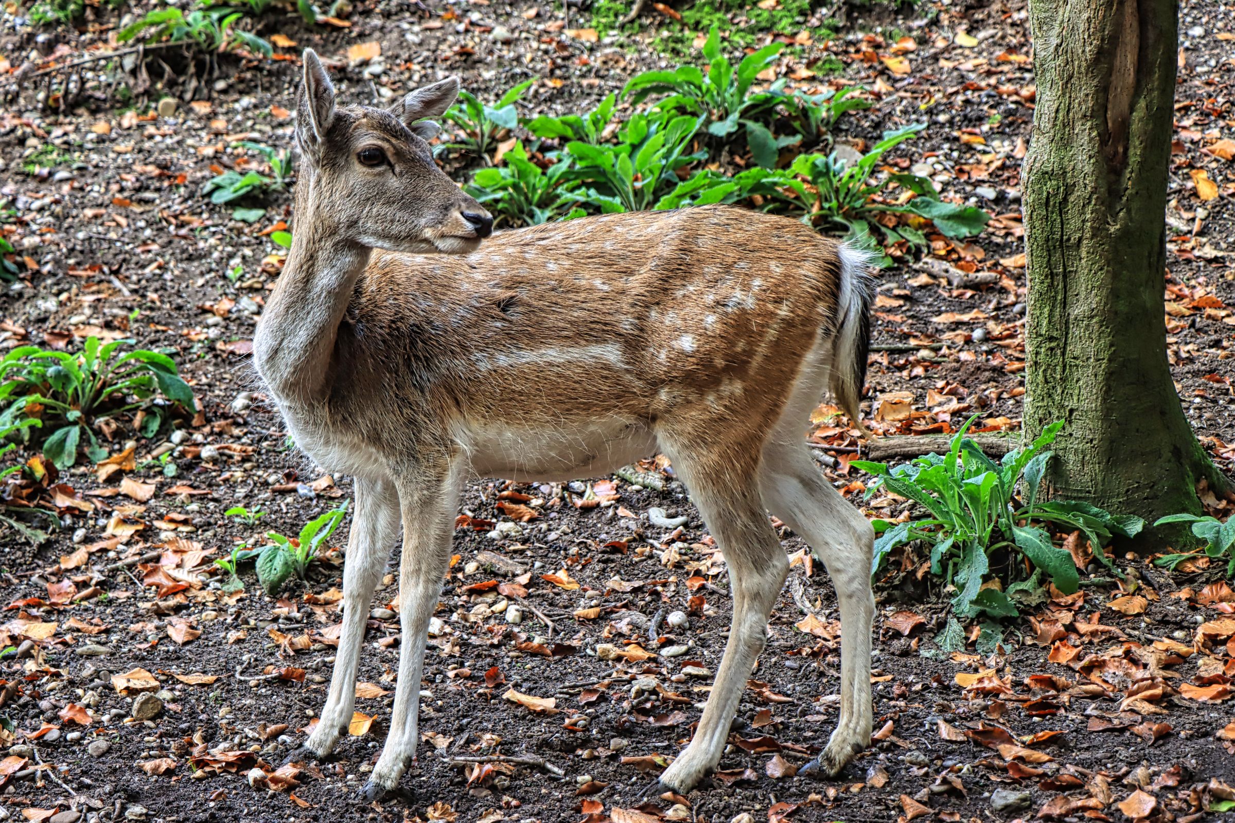 Während ich nach dem Abstieg noch etwas durch den Wald laufe, komme ich seit ewig mal wieder am Wildgehege vorbei. Die Tiere leben hier zwar eingezäunt, aber in einem relativ großen Gehege, so daß es vorkommen kann, daß man die Tiere auch gar nicht zu Gesicht bekommt. Einige Familien sind dabei, die Tiere zu füttern, so daß sich dieses Mal die Gelegenheit für ein paar Schnappschüsse ergibt.
