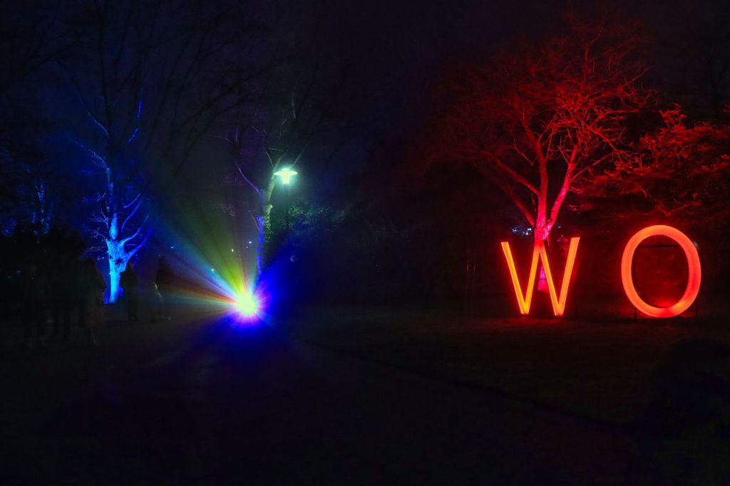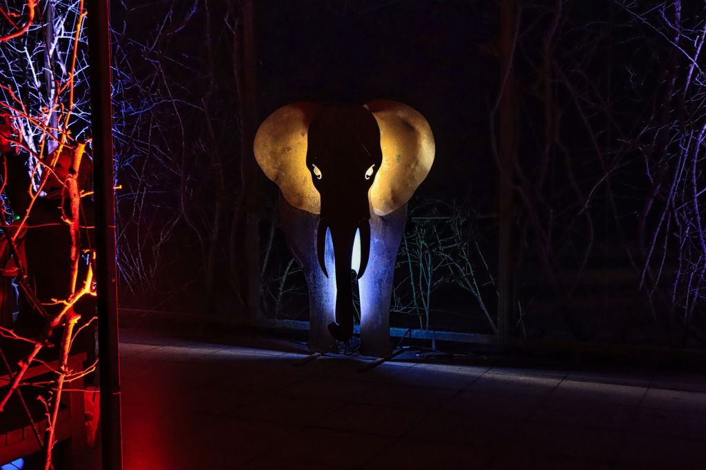 Für nach wie vor 9,- € Eintritt (Kinder 3,50 €) gibt es auch 2025 einiges zu sehen. Zum 15. Mal wurden Kabel verlegt und Lichtinstallationen aufgebaut. Dieses Mal wurden 1.125 LED Scheinwerfer und 13,5 km Kabel im Park verlegt. Auch in diesem Jahr ist das Team von World of Lights für die Gestaltung zuständig. Auf geht’s wie immer zu einer kleinen Erkundungsrunde, denn als ich den Park betrete, ist es noch nicht ganz dunkel. Sonnenuntergang ist erst gegen 17:00 Uhr.