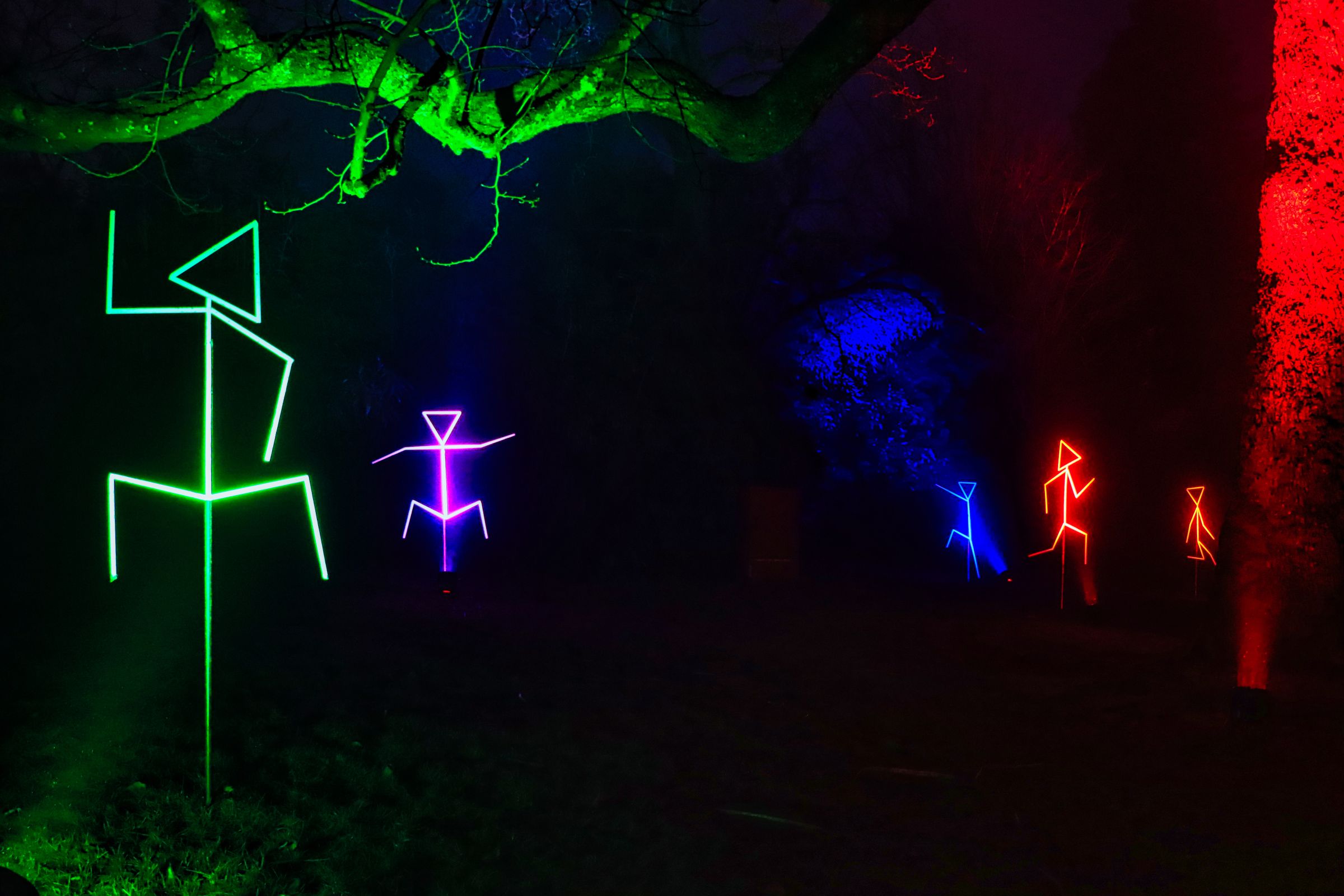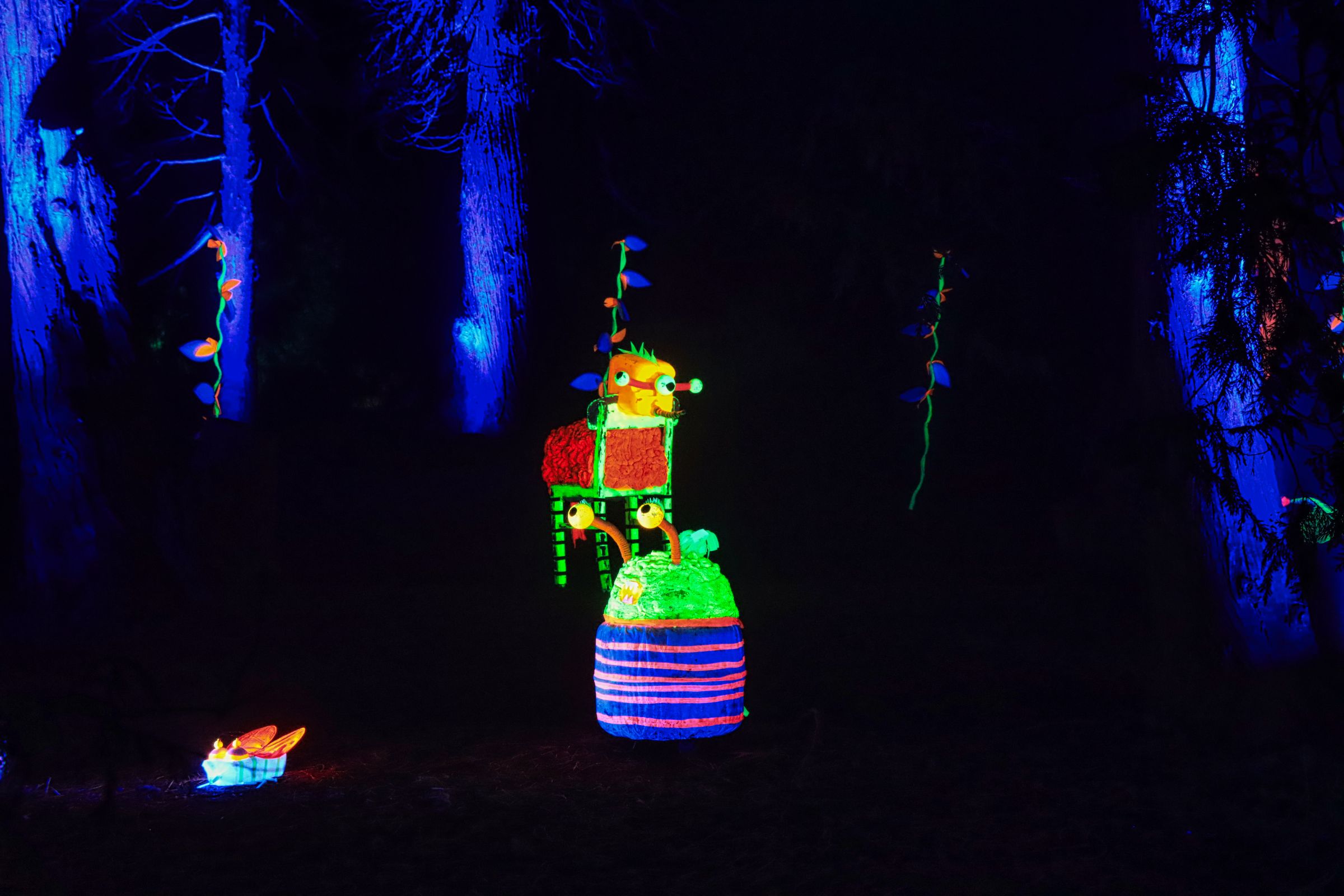 - und ein Schwarzlichtdschungel mit leuchtenden Farben und Formen