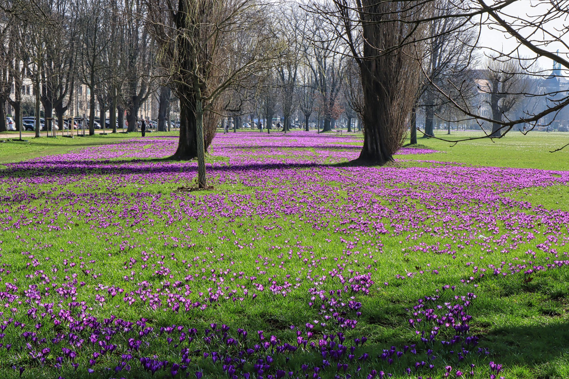 Auf der riesengroßen Wiesenfläche, die an sonnigen Tagen von Sport- und Picknickbegeisterten belagert wird, wächst das blaue Band, auch wenn es mehr lila ist. Angeblich 5 Millionen Krokusse, vielleicht auch etwas weniger, lassen die Wiese in einem blauen (lila ) Glanz erscheinen. Auch wenn die Bilder sich gleichen (mein Blogbeitrag aus dem Jahr 2023) es ist einfach ein tolles Bild. Mittlerweile dürften auch die Narzissen blühen, die waren letzte Woche noch nicht so weit. Endlich Frühling, da ist mir die Allergie fast egal. Bilder auch wieder bei Flickr und Google Photos.