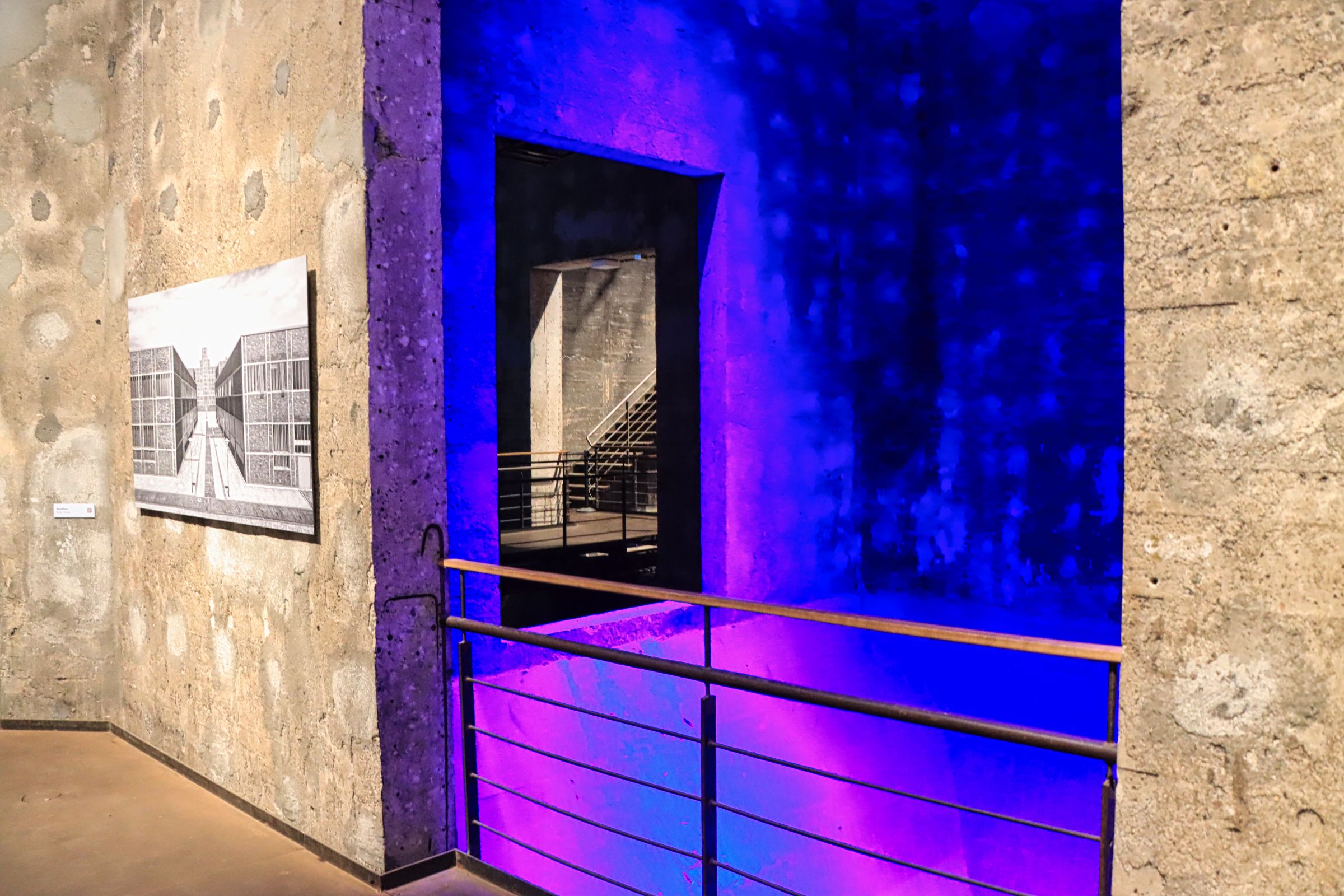 Die zweite Ausstellung fand im ehemaligen Rundeindicker (Klärbecken zum Reinigen des Waschwassers im Bergbau) statt. Xiaole Ju stellt hier (bis Oktober 2025) Bilder unter der Überschrift „Warum fotografiert man Blumen“ aus. Schwarz/Weiß Aufnahmen von fast vergessenen Pflanzen am Straßenrand. Nun ja, ich sag mal so, wem’s gefällt. Zum ersten Mal war ich auch im Künstler- und Künstlerinnenhaus – PACT Zollverein.