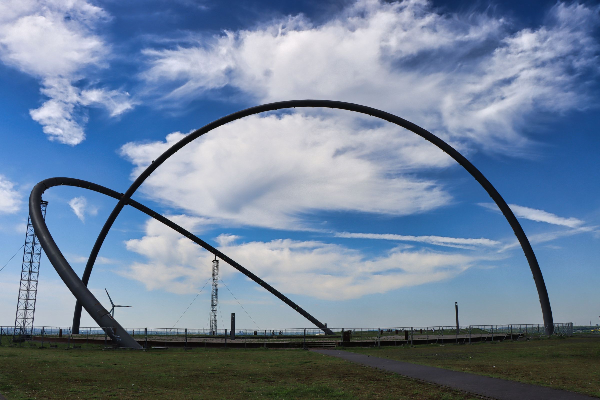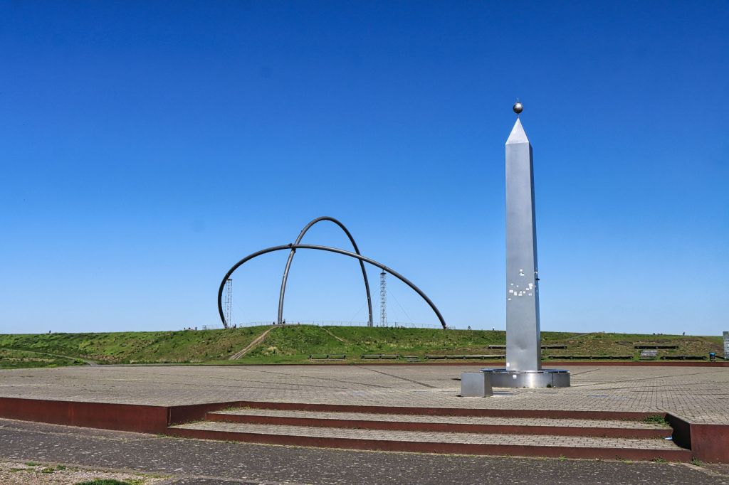Also habe ich Nägel mit Köpfen gemacht und bin gleich mal wieder auf die andere Seite zur ehemaligen Zeche Recklinghausen II in Hochlarmark gefahren. Unterhalb des Fördergerüstes von Schacht IV kann man sehr gut parken und dann geht’s über die nahe Drachenbrücke auf die eingangs erwähnte Halde. Serpentinen führen einen hier in ca. 15 – 20 Min. bis an die Haldenspitze. Die Drachenbrücke über die Cranger Straße ist dabei ein Hotspot. Oben landet man schließlich am Obelisken, der hier eine Sonnenuhr ist. Immer wieder spannend zu sehen, wie Menschen etwas ratlos vor der Uhr stehen und versuchen Uhr- und Jahreszeit abzulesen (1 Std. Sommerzeit abziehen nicht vergessen).