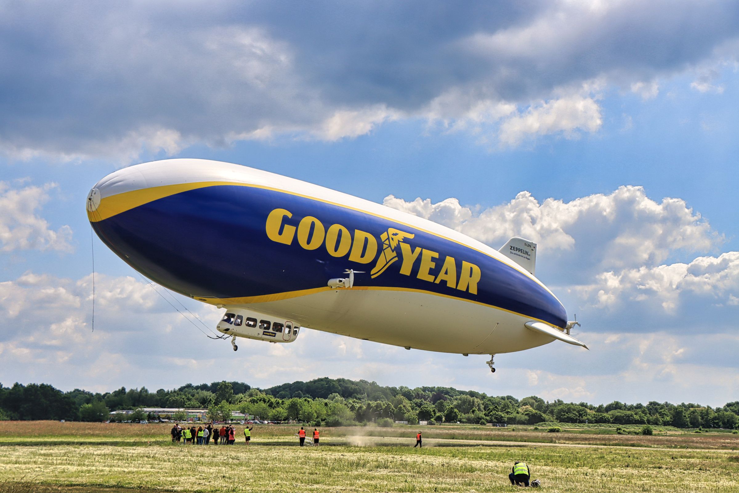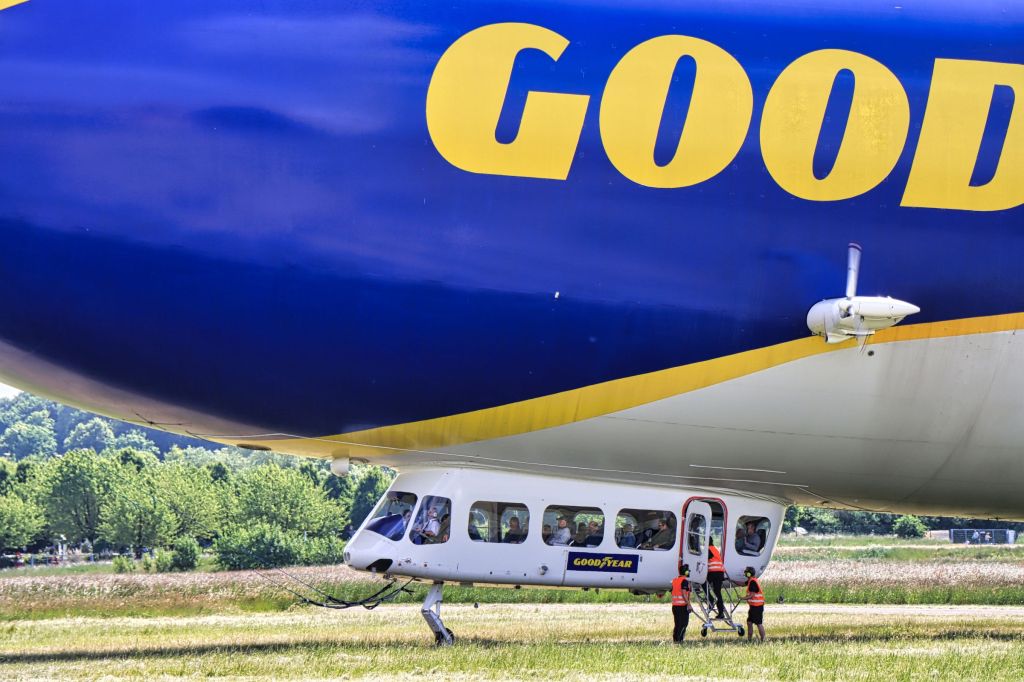 Es ist immer noch ein bisschen Baustelle, aber die Betreiber von Zeppelinflug.de haben jetzt ein festes Gebäude und keinen Container mehr. Und sonst, tja sonst startet und landet der Zeppelin nach wie vor in einiger Entfernung zum Zuschauer, auch die Möglichkeit zuzuschauen ist noch etwas schwierig. Ein zwei Meter hoher Zaun sichert den Flugbereich (zurecht) vom Besucherparkplatz. Ich persönlich fände eine Aussichtsterrasse schön oder man bringt, wie ich, sein Trittleiterchen mit. Zwar gucken einen einige dann ein bisschen merkwürdig an, sind aber gleichzeitig ein bisschen neidisch, nicht selbst einen so guten Aussichtsplatz zu haben.
