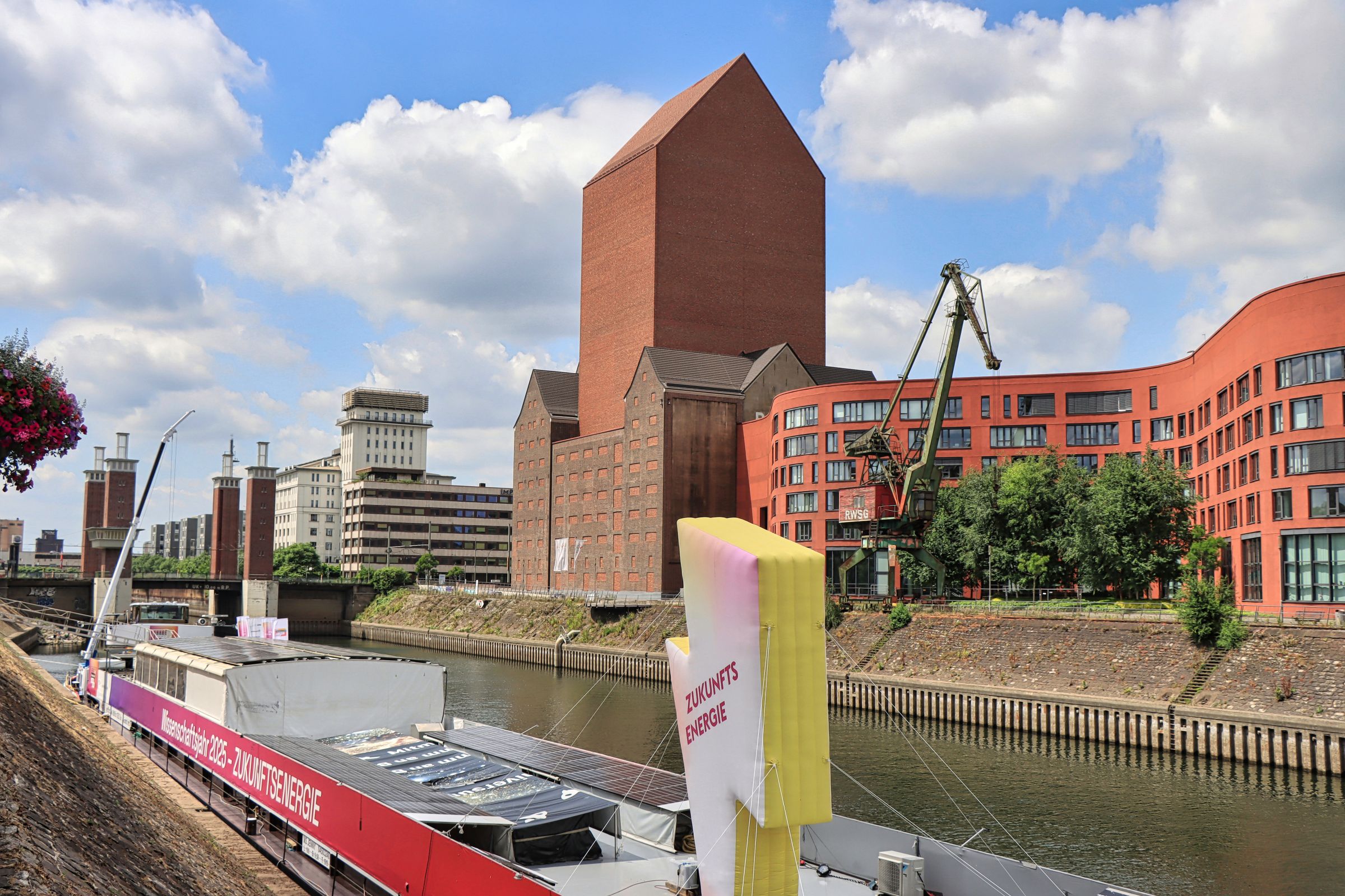 Vor ein paar Tagen lag mal wieder die MS Wissenschaft im Duisburger Innenhafen. Die MS Wissenschaft ist ein Binnen- und Ausstellungsschiff, gefördert durch das Bundesministerium für Forschung Technologie und Raumfahrt. Thema dieses Jahr Zukunftsenergie. Man erfährt etwas über die Wind- und Solarenergie, aber auch über Wasserstoffproduktion, wie man Energie speichern kann und wie die Technik auch in Wohnviertel integriert werden kann. Die weiteren Stationen der Schiffstour bekommt ihr hier.