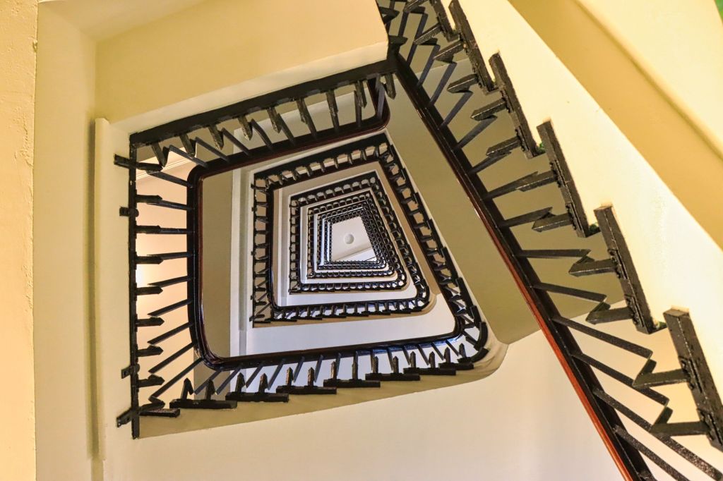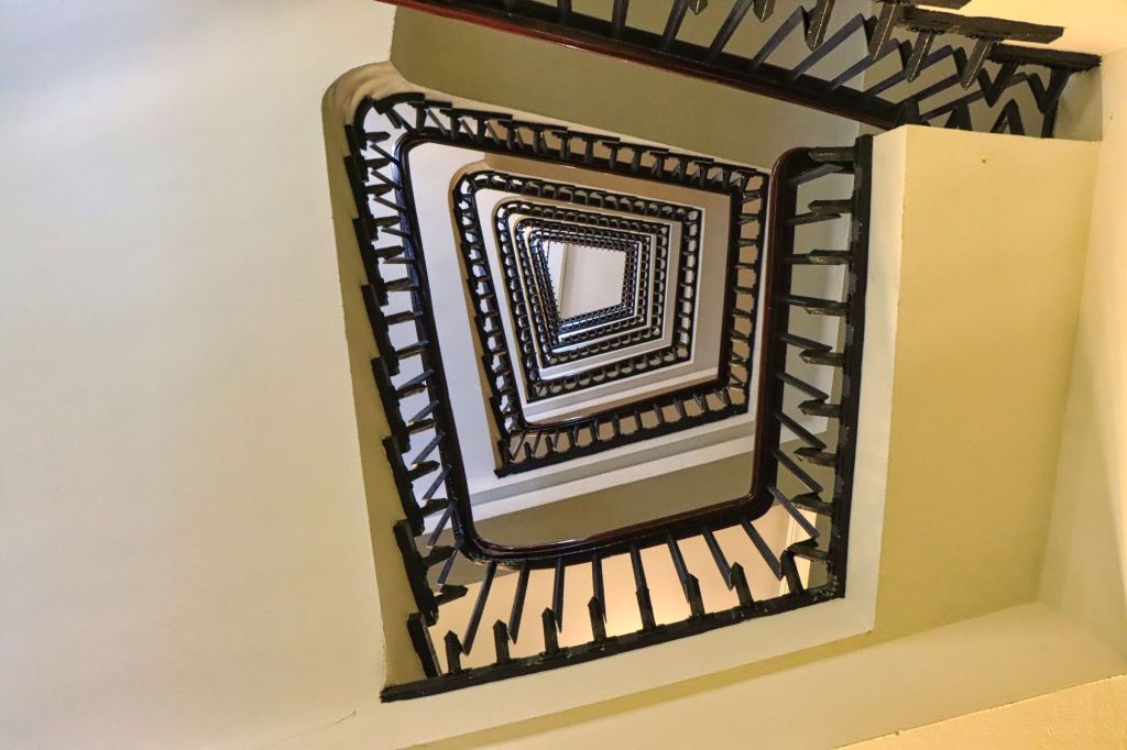 Zum Schluß habe ich nochmal versucht in ein paar Kontorhäuser rund um das Chilehaus zu kommen. Die Treppenhäuser sind z.T. noch aus dem letzten Jahrhundert und immer ein Foto wert (hier frei aus der Hand, weil ich kein Fotostativ dabei hatte). Danach habe ich eine kleine Pause eingelegt, denn am Abend ging es noch ins Miniatur Wunderland.