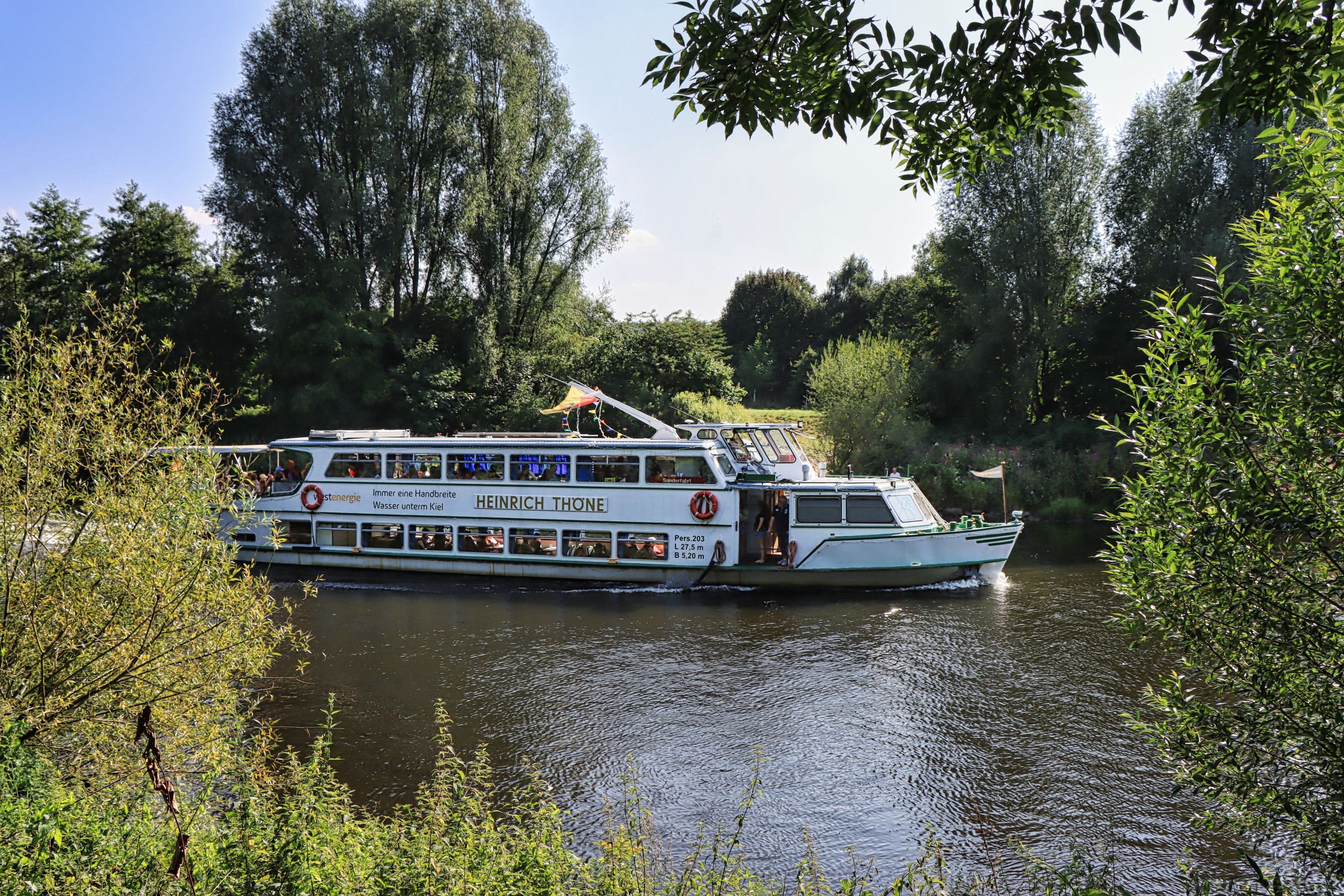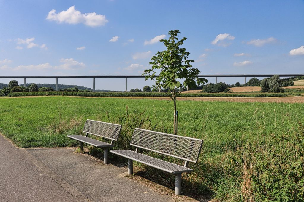 Nach einigen Minuten erscheint am Horizont die Ruhrtalbrücke. Dieses Mal bin ich aber nicht so weit gelaufen, denn es waren um die 28° an diesem Tag. Ich habe einen sehr schönen Ruheplatz gefunden oder sollte ich sagen Ruhrplatz? Neben den beiden, wie mir scheint noch recht neuen Bänken steht ein kleines Bäumchen, daß in ein paar Jahren sicher schönen Schatten bieten wird. Auf dem Wasser schippert dann noch das Ausflugsbötchen nach Mülheim a.d. Ruhr, Herz was willst du mehr? Weitere Bilder bei Flickr und Google Photos.
