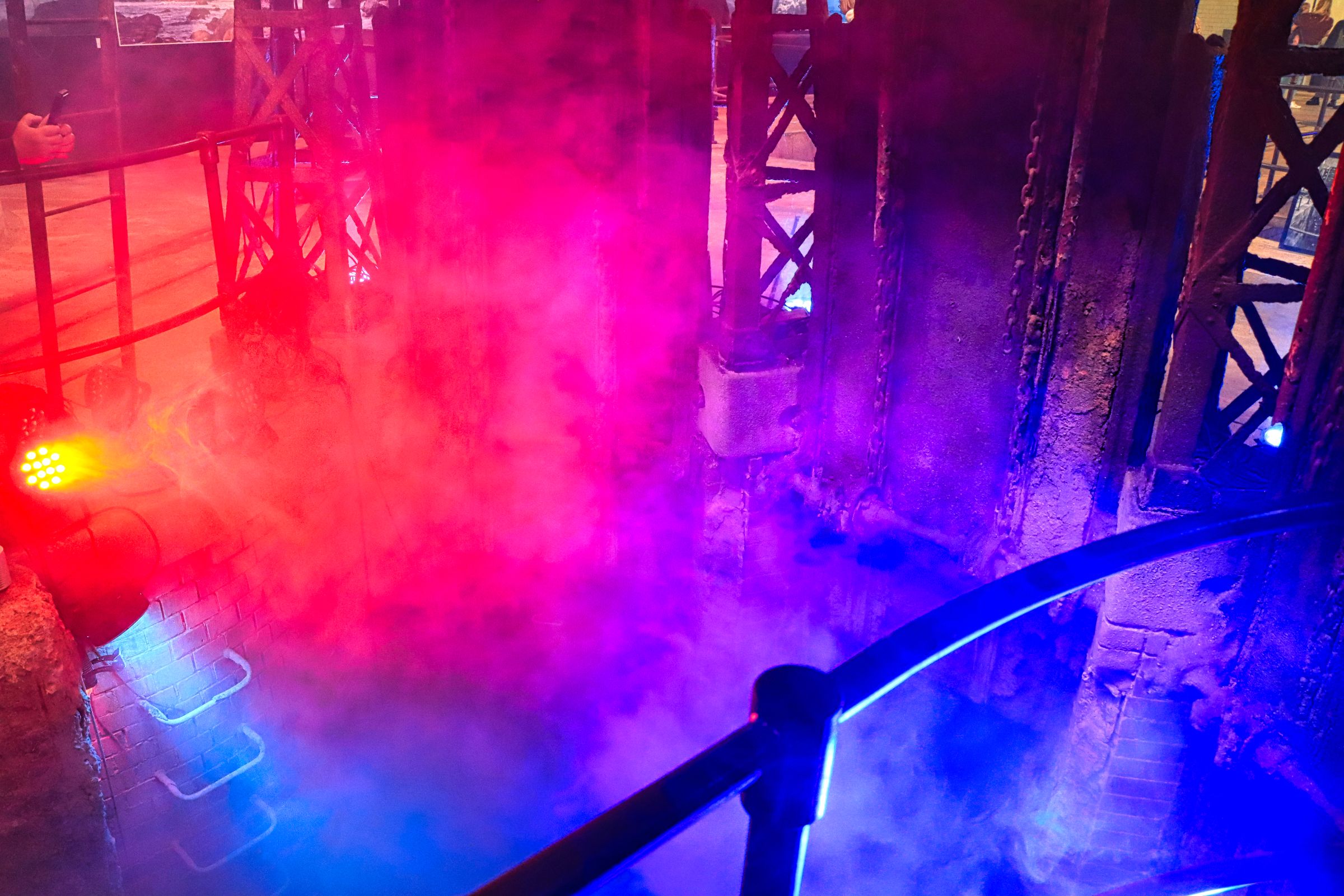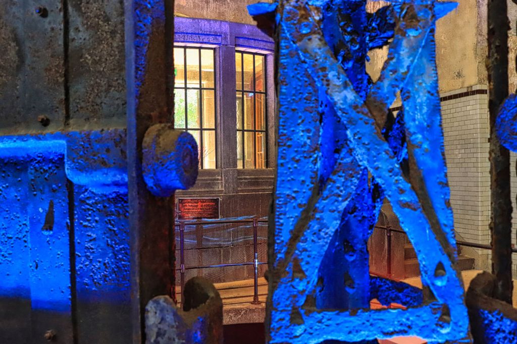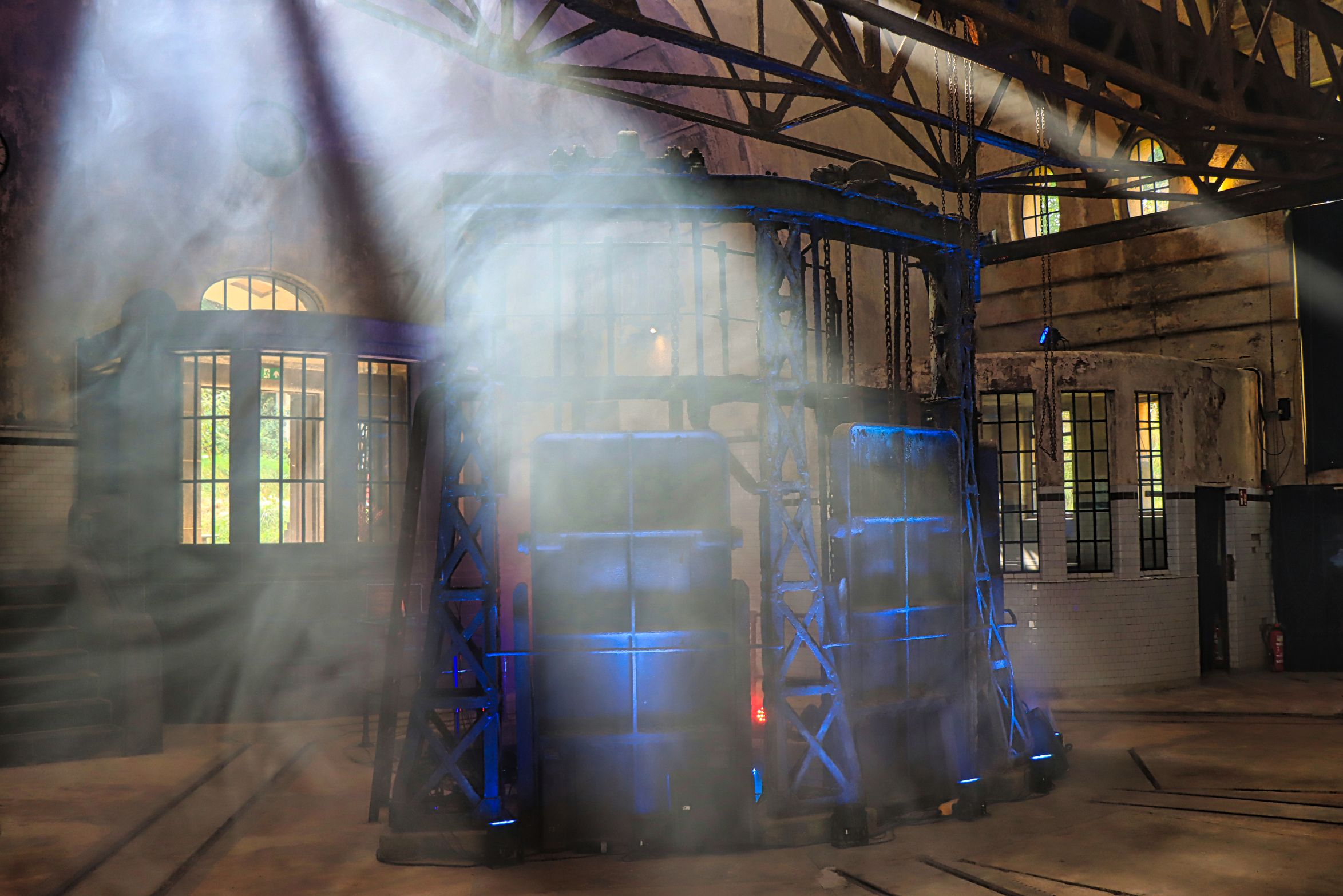 Im Anschluß ging es zurück auf die linke Rheinseite nach Krefeld Uerdingen. Hier wurde von 1910 bis 1962, das Pumpwerk sogar noch bis 1996, das Klärwerk der Stadt Krefeld betrieben. Ich berichtete schon vor einiger Zeit mal über dieses Kleinod (z.B. 2023). Das historische Klärwerk wird seit 2018 wieder renoviert. Seine neue Bestimmung ist aktuell ein Ausstellungs- und Veranstaltungsraum in historischer Kulisse. Und das paßte dieses Wochenende wie Faust aufs Auge, denn nicht nur, daß sich immer ein paar fotografische Highlights im Gebäude ergeben (dieses Mal wurde mit ein bisschen Trockeneisnebel die einfallende Sonne besonders hervorgehoben), nein aktuell läuft sogar eine Fotoausstellung des Covestro Foto Film Clubs zum Thema „Die Ästhetik des Wassers“.