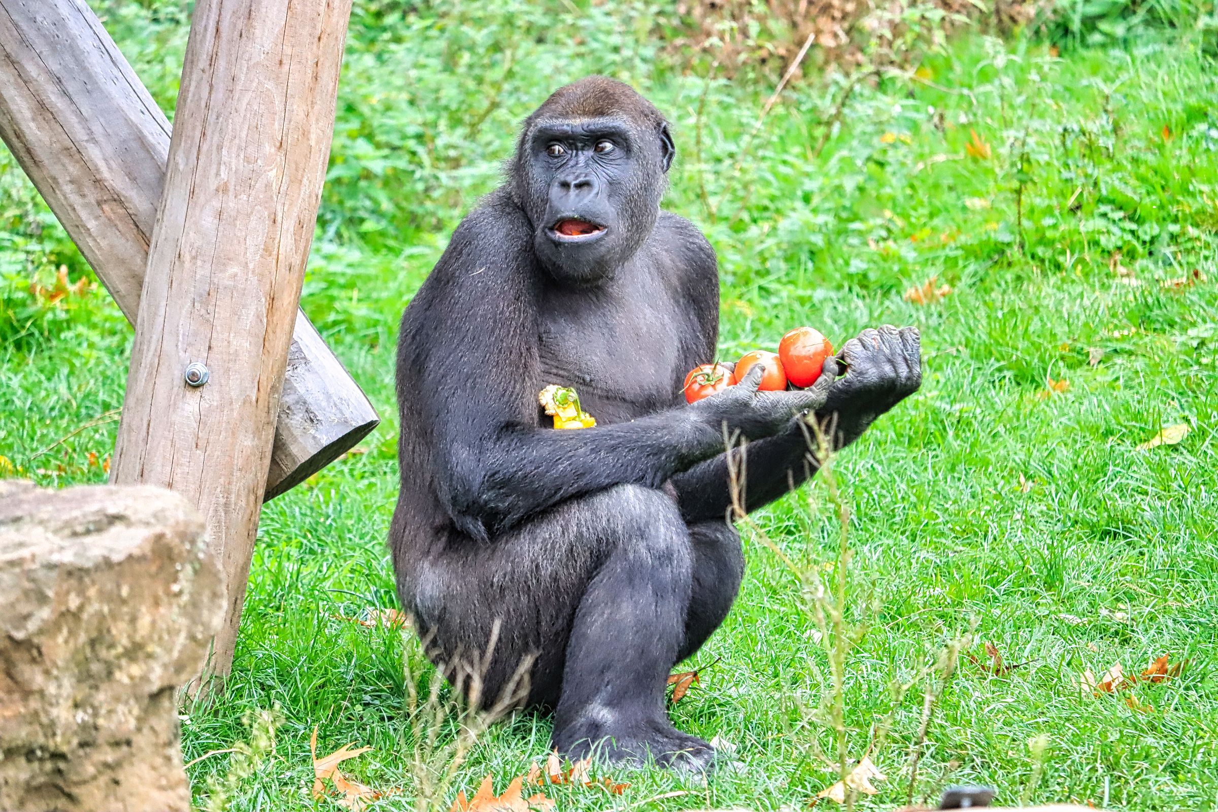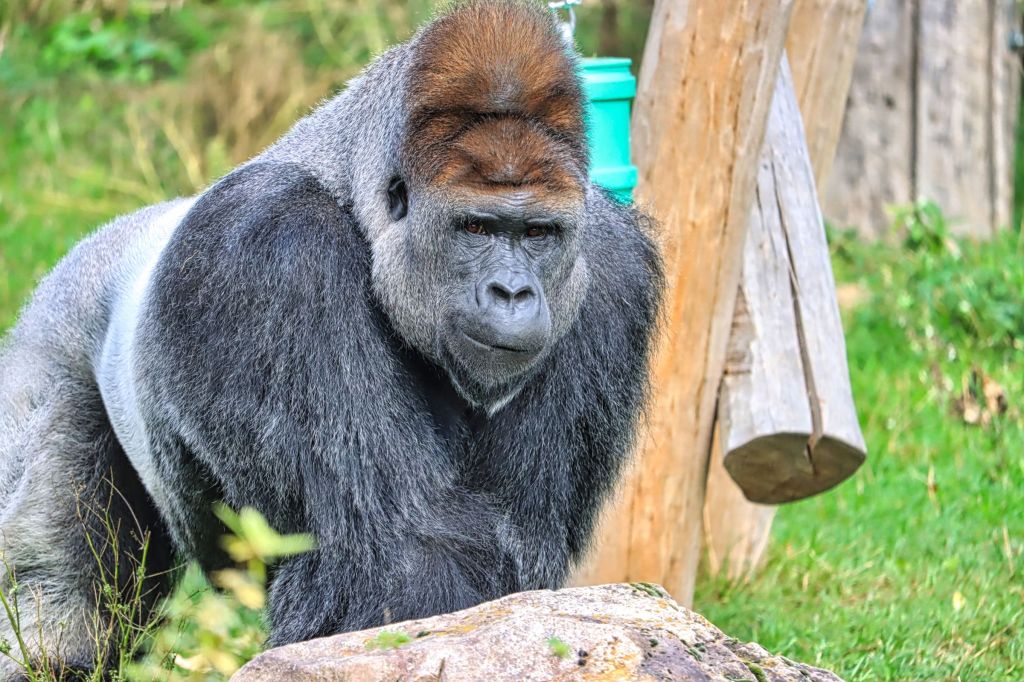 Drinnen wohnen aktuell die beiden überlebenden Schimpansen, weitere Tiere sollen in den nächsten Wochen folgen. Gleich nebenan sind die Gorillas zu Hause, die schon vorher ein extra Gebäude hatten. Sie haben jetzt ein größeres Gehege, das demnächst in einem abgeteilten Bereich die jungen männlichen Tiere vom Silberrücken trennen soll, weil in einer Gorillagruppe nur ein dominantes Männchen leben kann. Weitere Gebäude, die in naher oder ferner Zukunft auch wieder Orang Utans beherbergen sollen, sind in Planung.