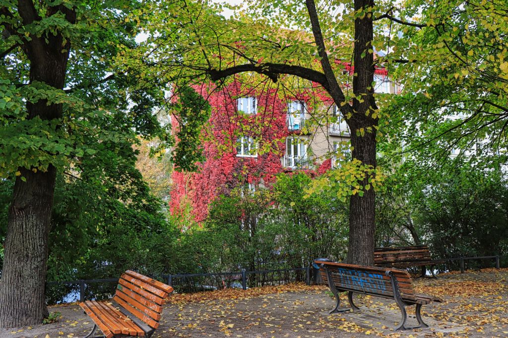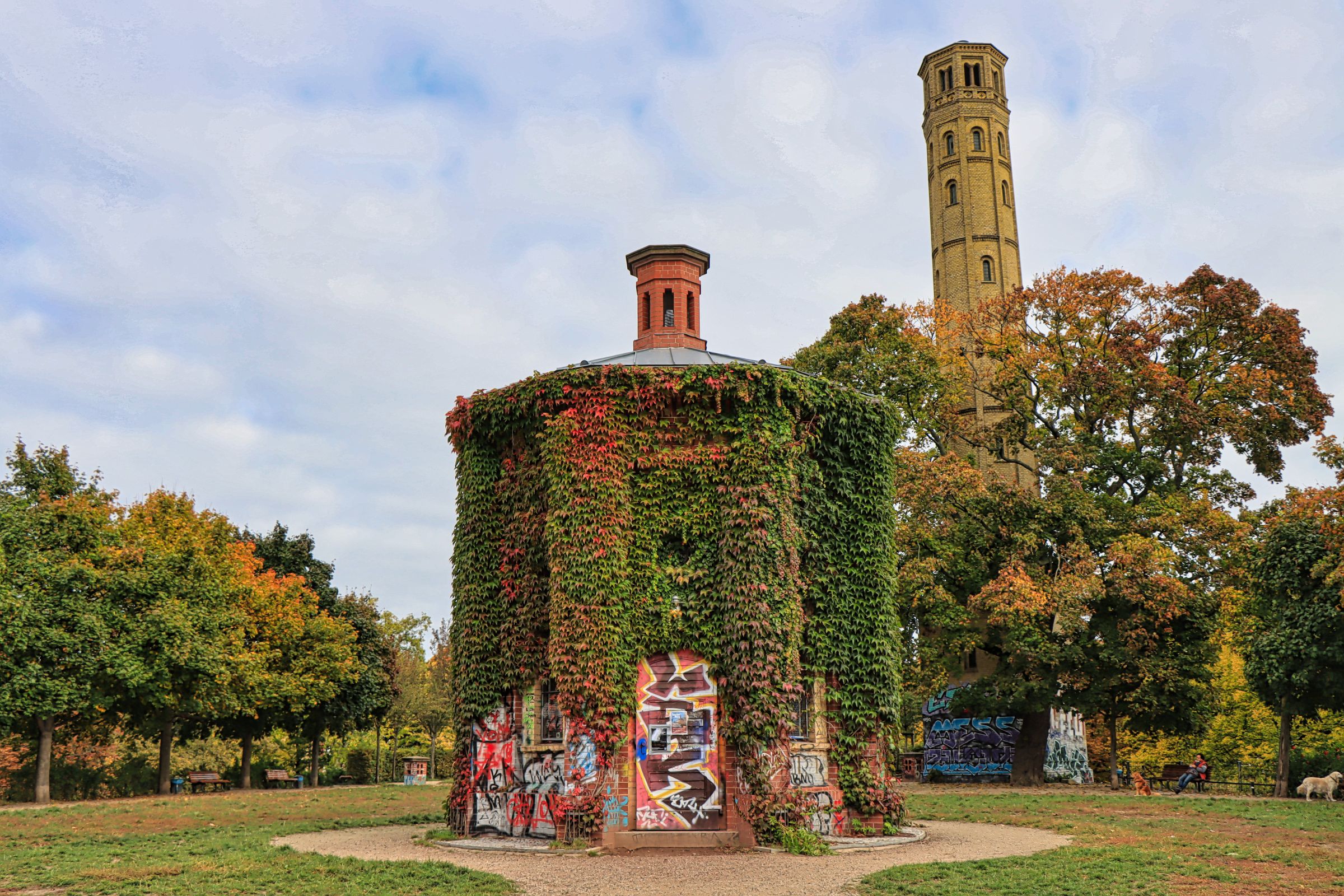 Als Ziel für den nächsten Tag hatte ich mir den Wasserturm an der Knaakstraße vorgenommen. Der Turm in Prenzlauer Berg ist der älteste Berliner Wasserturm, fertiggestellt 1877 und in Betrieb bis 1952. Dahinter befindet sich noch ein Standrohrturm und ein Erdbehälter sowie ein kleiner Park mit Bänken und Spielplatz. Gerade jetzt im Herbst ergab sich ein schöner Fotohotspot. Zeit dort einen Moment zu verweilen. Auf dem Rückweg bin ich dann erstmal bei Konnopke auf eine Currywurst eingekehrt und habe dann noch im Park am Nordbahnhof nach neuen Street Art Motiven auf den alten Mauerresten Ausschau gehalten.