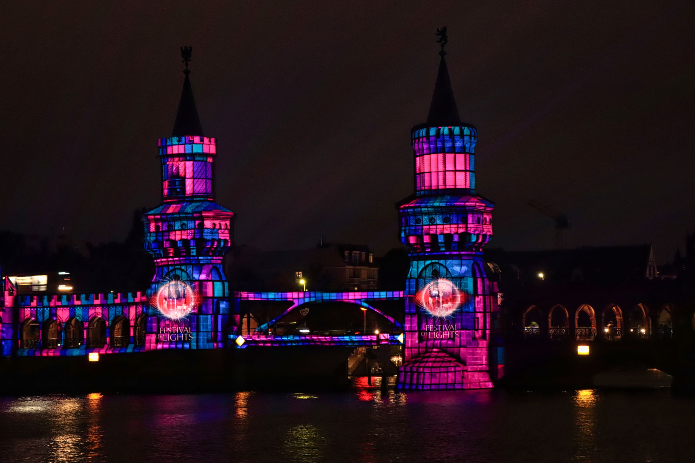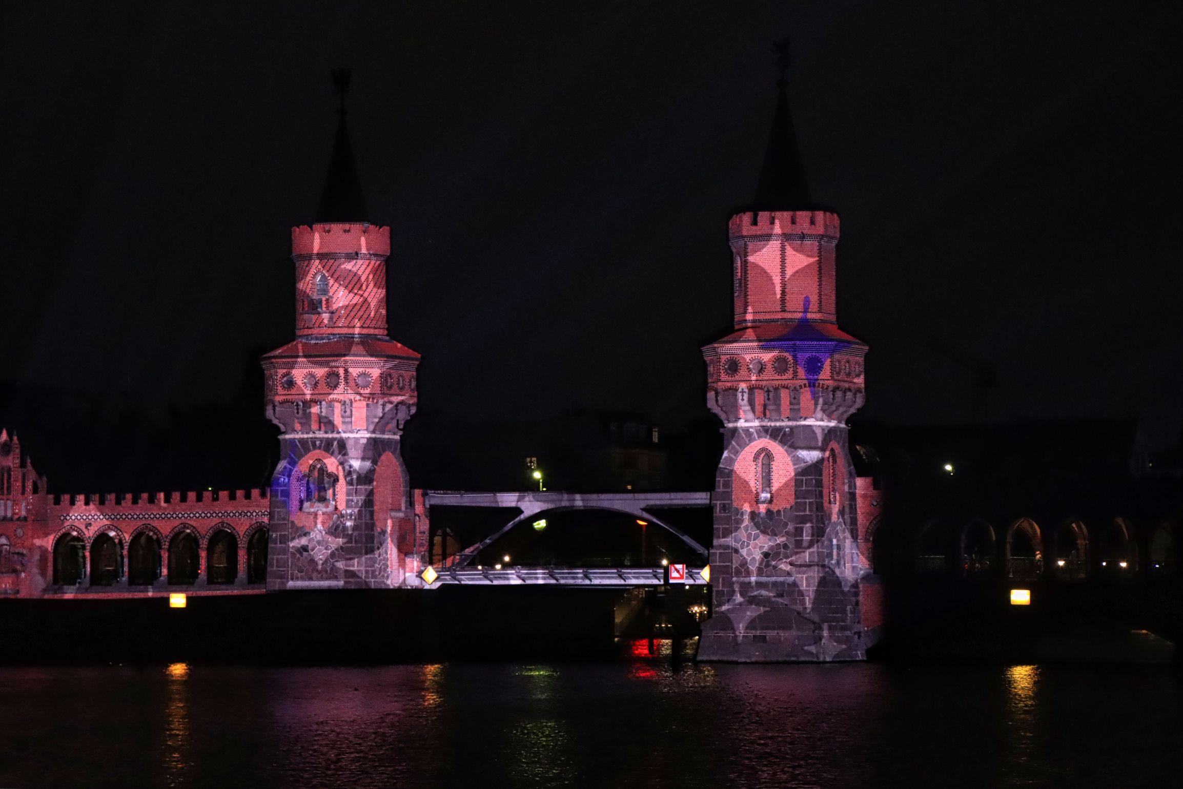 Weitere Bilder vom Festival of Lights habe ich am Abend dann am Fernsehturm und am Potsdamer Platz gemacht. Letzterer war mir allerdings mit dem tosenden Verkehr zu voll, weshalb ich den Platz auch relativ schnell wieder verlassen habe. Die U-Bahn hat mich weit weg nach Kreuzberg/Friedrichshain gebracht, denn die Oberbaumbrücke sollte dieses Jahr wieder angestrahlt werden. Leider hatte dort ein Beamer den Geist aufgegeben und die Anstrahlung erfolgte aus 260 Meter(!) Entfernung. Für die Zuschauer etwas ambitioniert, aus der Entfernung einigermaßen gute Bilder zu machen.