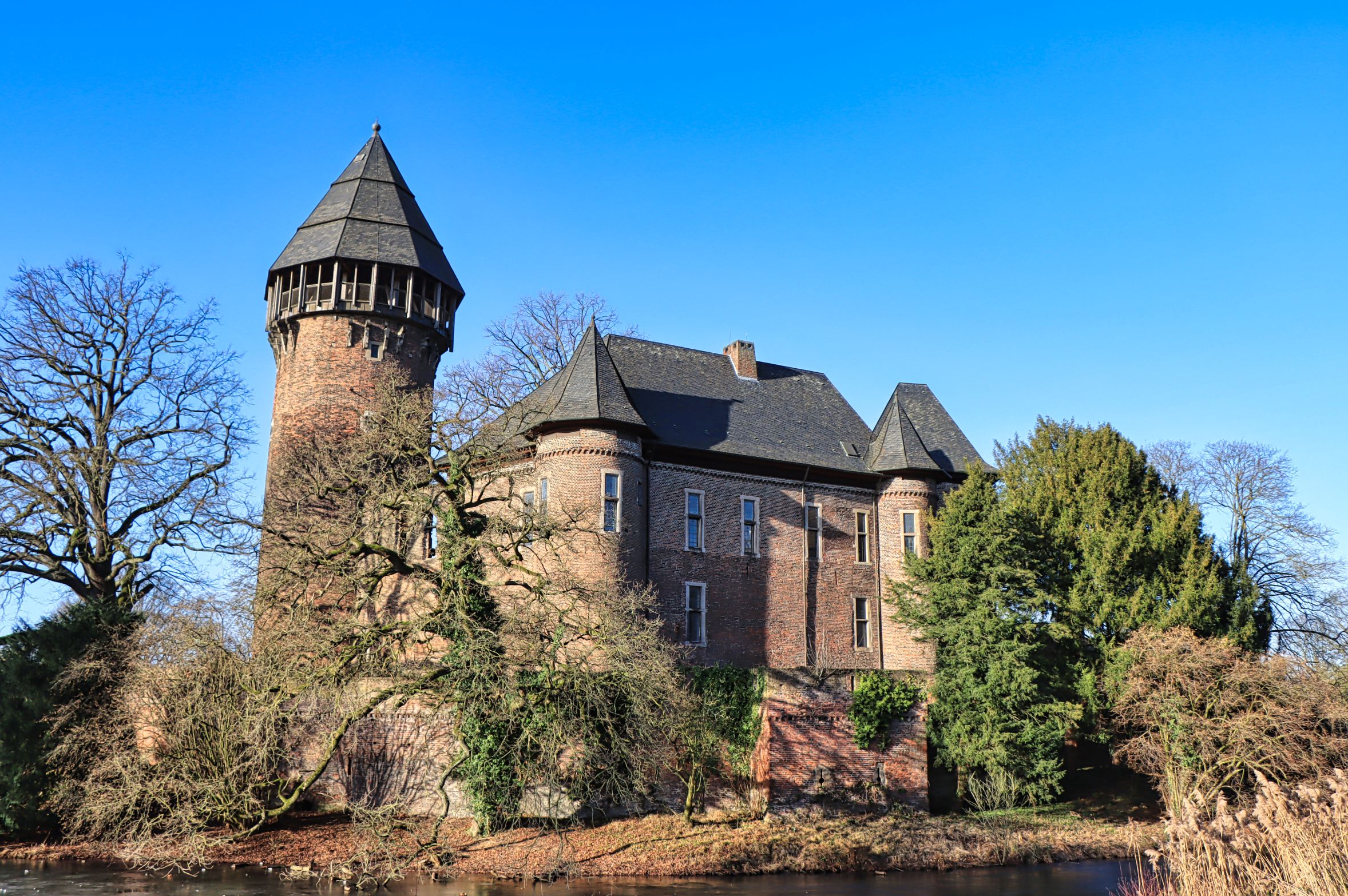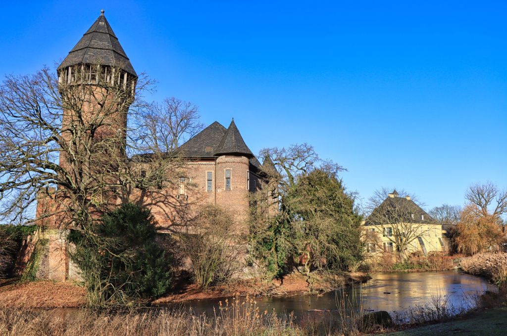 Jetzt aber geht’s in neue Jahr. Ich habe einen Tag vor dem Jahreswechsel das schöne Winterwetter genutzt, um noch eine Runde um die Burg und durch den Greiffenhorstpark in Krefeld Linn zu drehen. Ich weiß nicht wie es euch geht, aber wenn das Licht gerade paßt und mir ein schönes Bild geglückt ist, versuche ich irgendwann später die Situation noch einmal zu wiederholen. Selten aber steht das Licht wie beim ersten Mal, so wie hier 2019. Somit gibt’s heute ein paar winterliche Bilder bei blauem Himmel, verbunden mit ein paar Gedanken zum neuen Jahr.