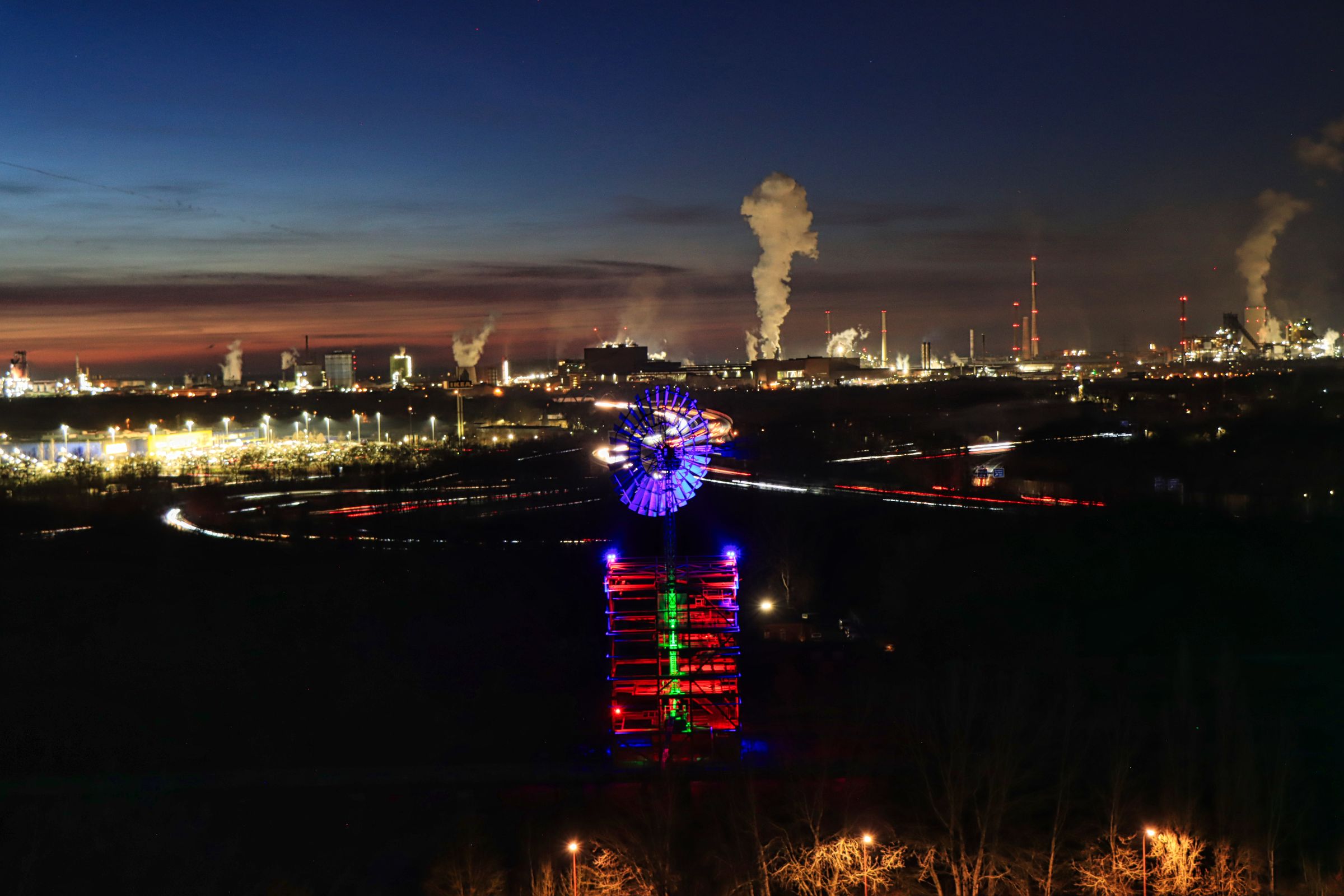 Wenn ich das richtig gelesen habe, wurde die Lichtinstallation 1996 im Rahmen der Internationalen Bauausstellung Emscher Park (IBA) installiert und dürfte demnach in diesem Jahr 30 Jahre alt werden. Das sage ich doch mal herzlichen Glückwunsch. Ach ja, wie immer gibt’s die Bilder (auch die aus Dezember) bei Flickr und Google Photos.