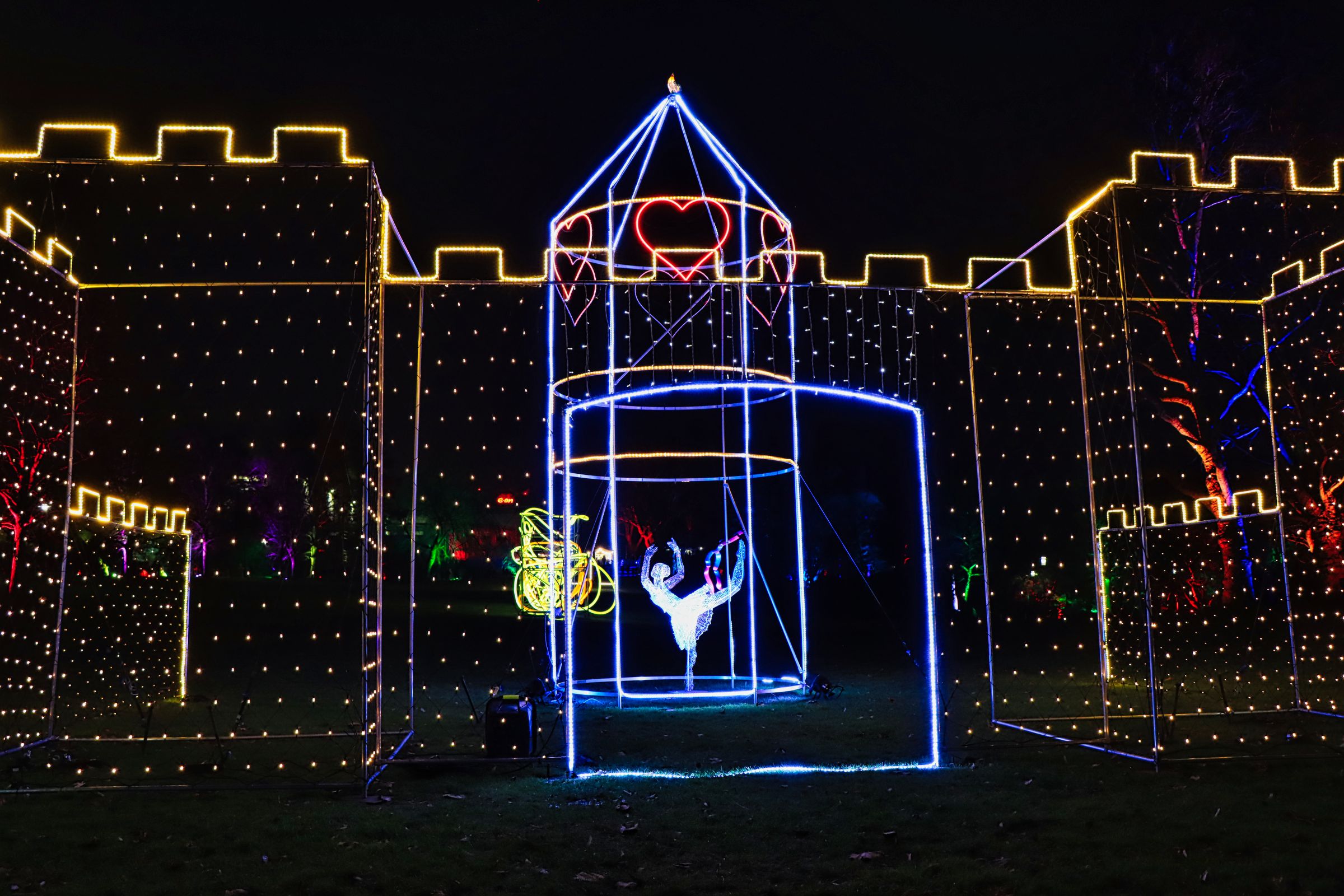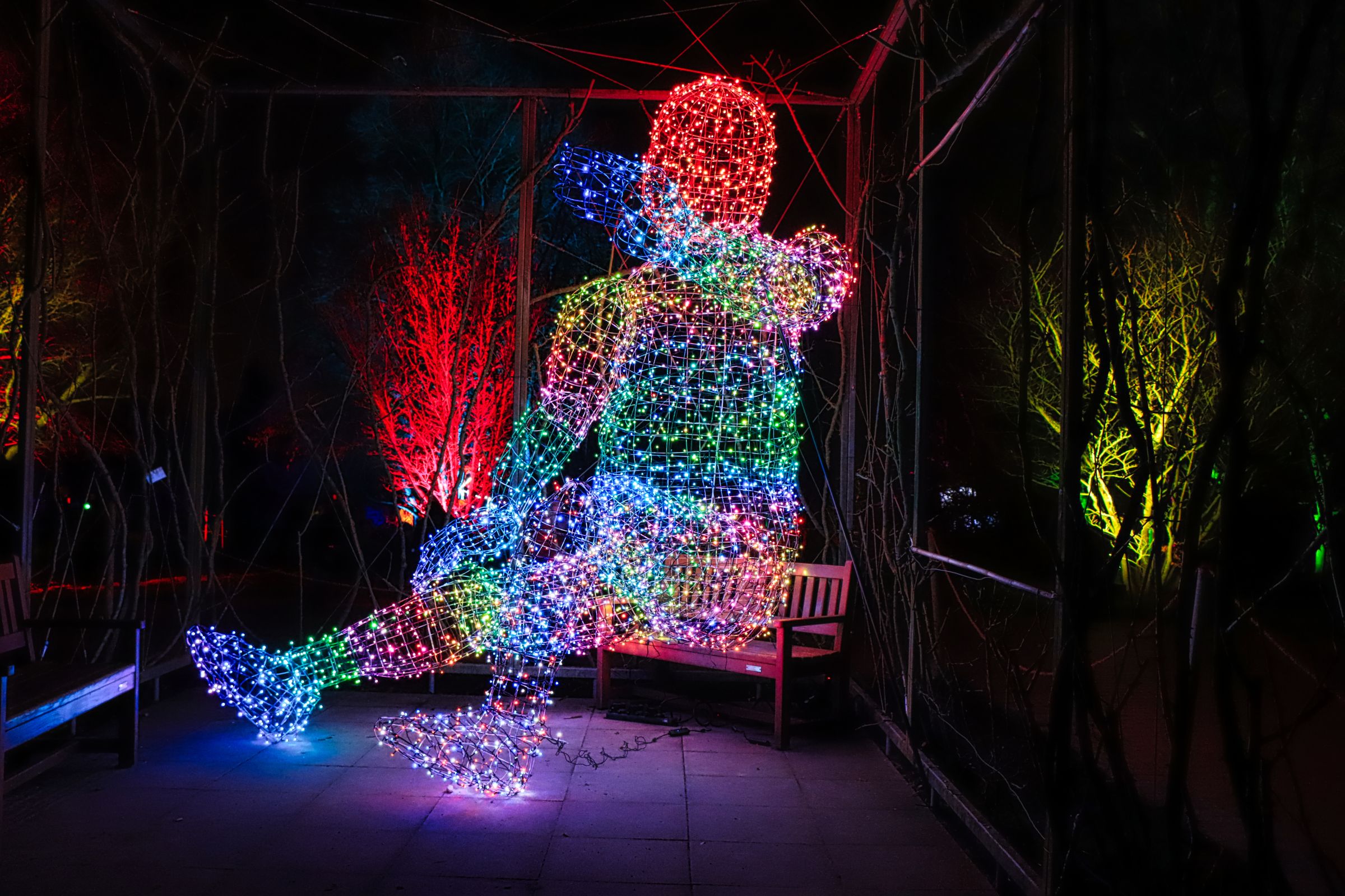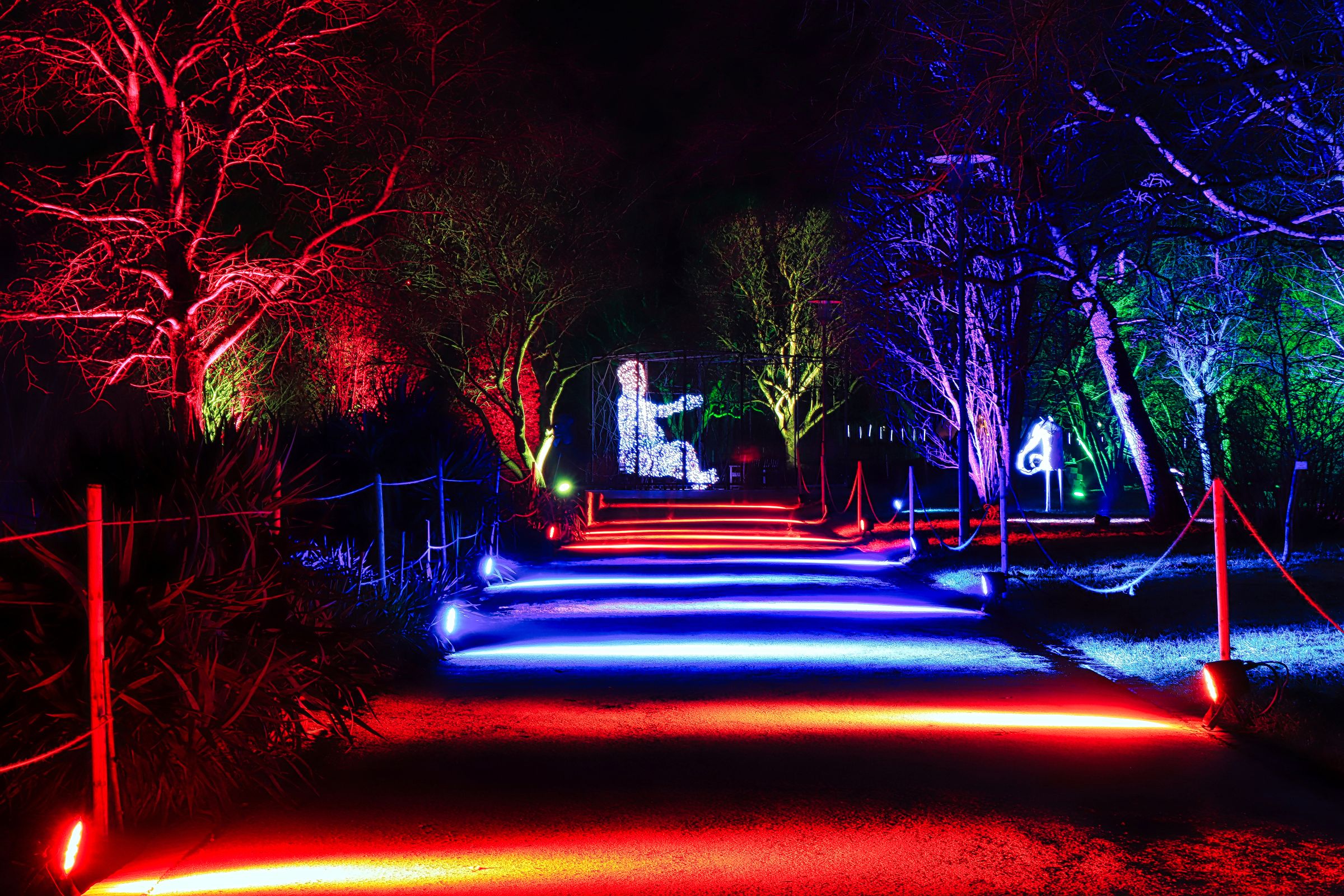 Seit letztem Samstag ist es wieder soweit und dieses Jahr wieder mit vielen neuen Lichtobjekten. Es gibt gleich verschiedene Highlights, die Lindenallee, bunt wie jedes Jahr, aber auch zwischen Lindenrund und Rosengarten ist einiges zu sehen. Vor allem der Riese aus hunderten LEDs auf der Bank ist ein Blickfang, gleich aus zwei Richtungen. Lediglich im Staudental bzw. am Staudenhang unterhalb des Lindenrunds war es dieses Mal etwas mau bestückt.
