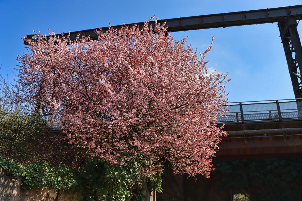 Auf dem Rückweg zum vorderen Teil des Parks bin ich dann nochmal durch die Sintergärten spaziert und habe selbst zwischen Industriekultur den Frühling entdecken können. Es ist schon irgendwie verrückt, daß auf einem Industriegelände heute die Narzissen blühen. Im Durchgang vom Bunkervorplatz zum Cowperplatz hängt seit ein paar Tagen auch die neue OpenAir Bildergallerie. Auch Kunst gibt’s also auf dem Gelände und wem das nicht genug ist, der klettert eben noch auf den Hochofen (ich dieses Mal nicht). Die Bilder des Beitrags und ein paar mehr gibt’s auch wieder bei Flickr und Google Photos.