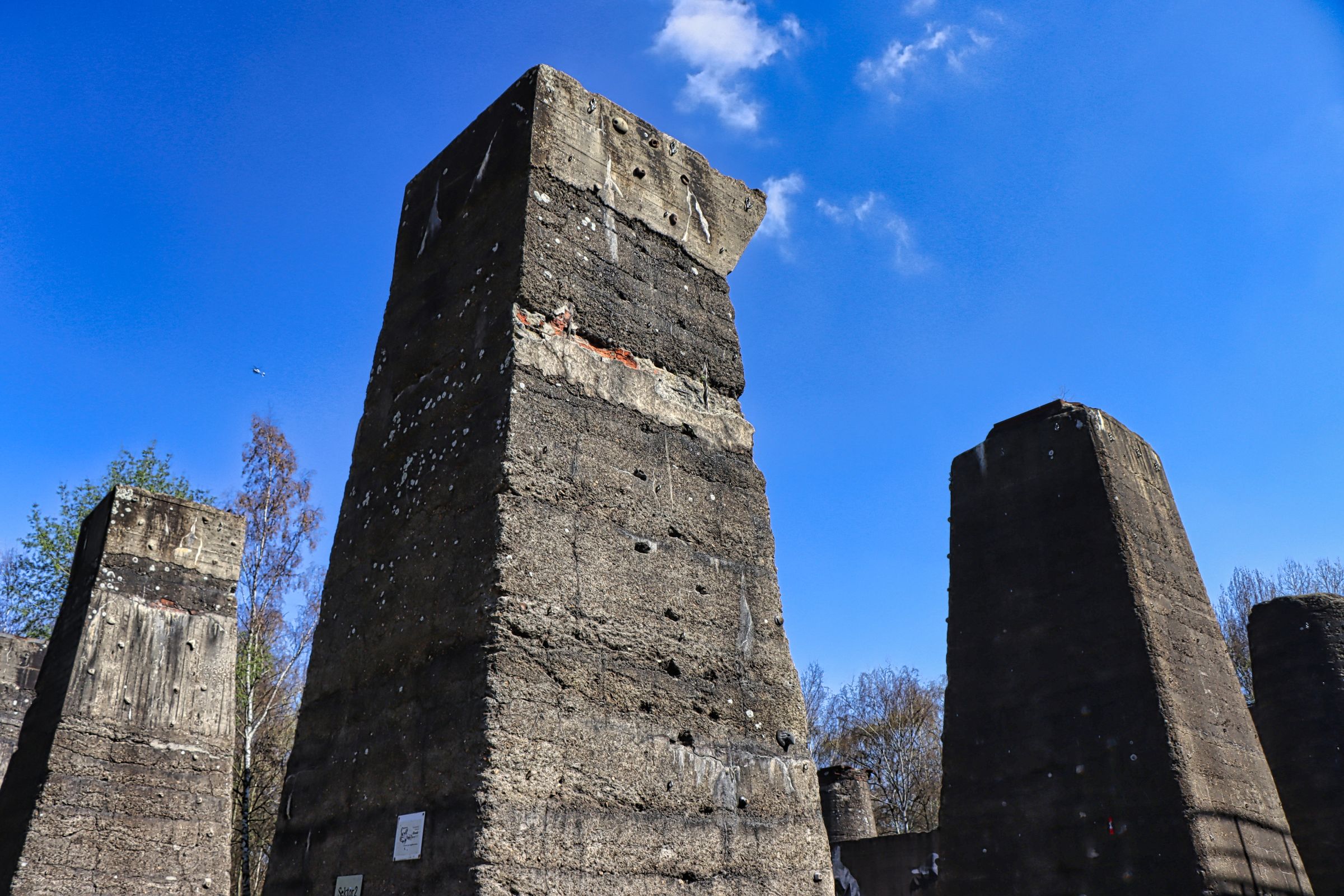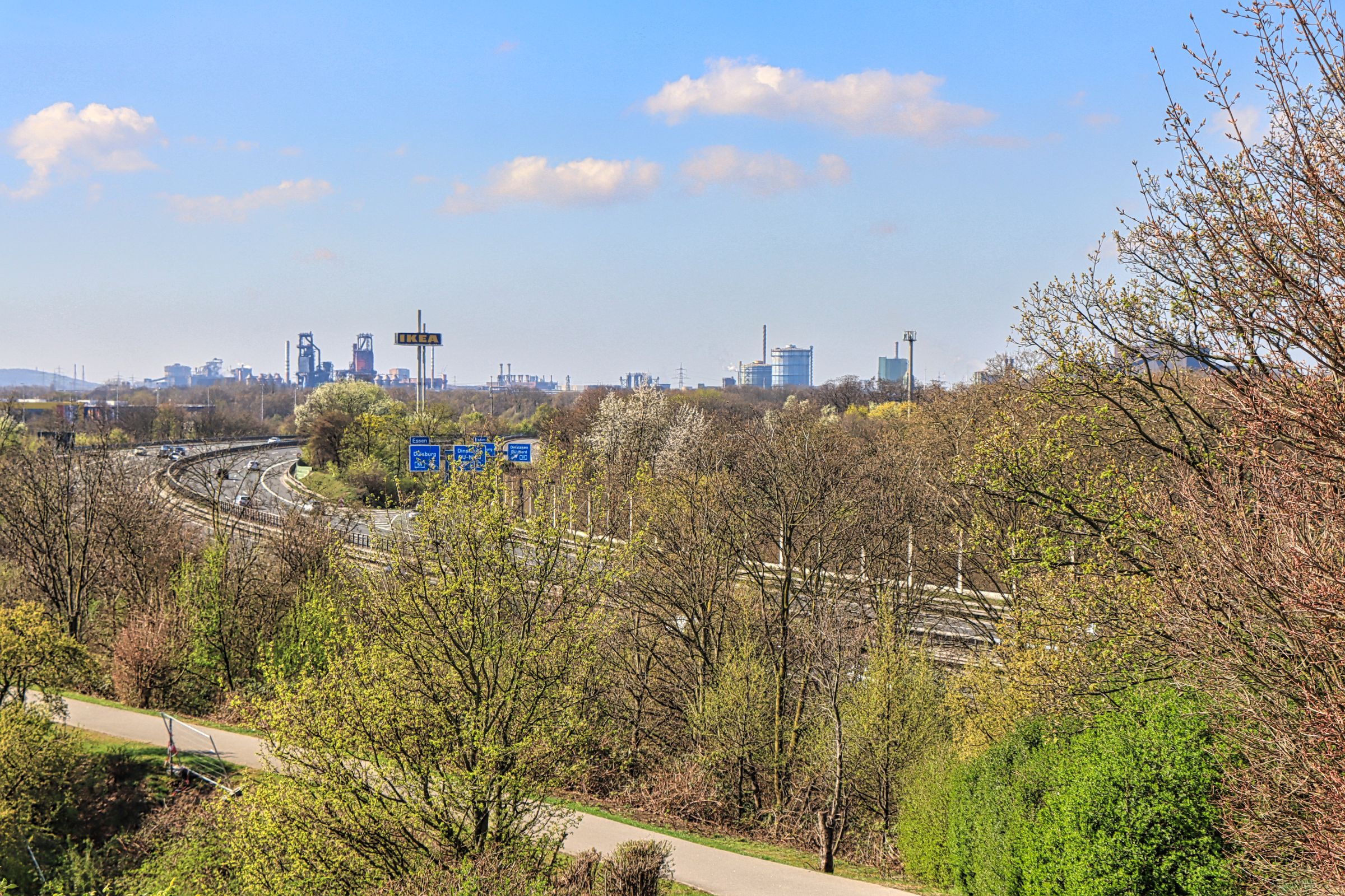 Vermutlich war ich schon mehr als 30 x im Landschaftspark und was soll ich sagen, ich habe doch tatsächlich noch was neues entdeckt. Wobei, je länger ich darüber nachdenke, habe ich das Gefühl doch schon mal da gewesen zu sein. Geht euch das auch schon mal so? Man ist felsenfest überzeugt, an dem Ort war ich noch nie und je länger der Eindruck wirkt, je mehr schwindet der Gedanke. Also vorbei an den Bergsteigern (kaum zu glauben, aber es gibt einen Ableger des Deutschen Alpenvereins in Duisburg) rauf auf die kleine Halde oberhalb des Sinterplatzes. Von hier hat man einen guten Gesamtüberblick, fast über das gesamte Gelände inclusive der Autobahn A42, umgangssprachlich Emscherschnellweg genannt.