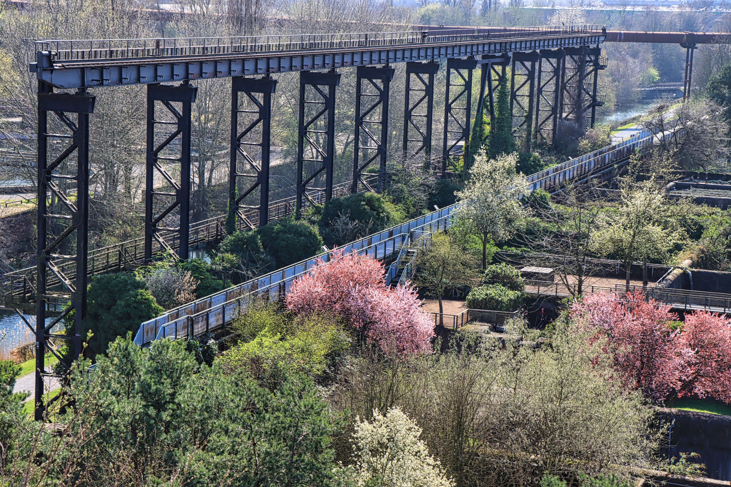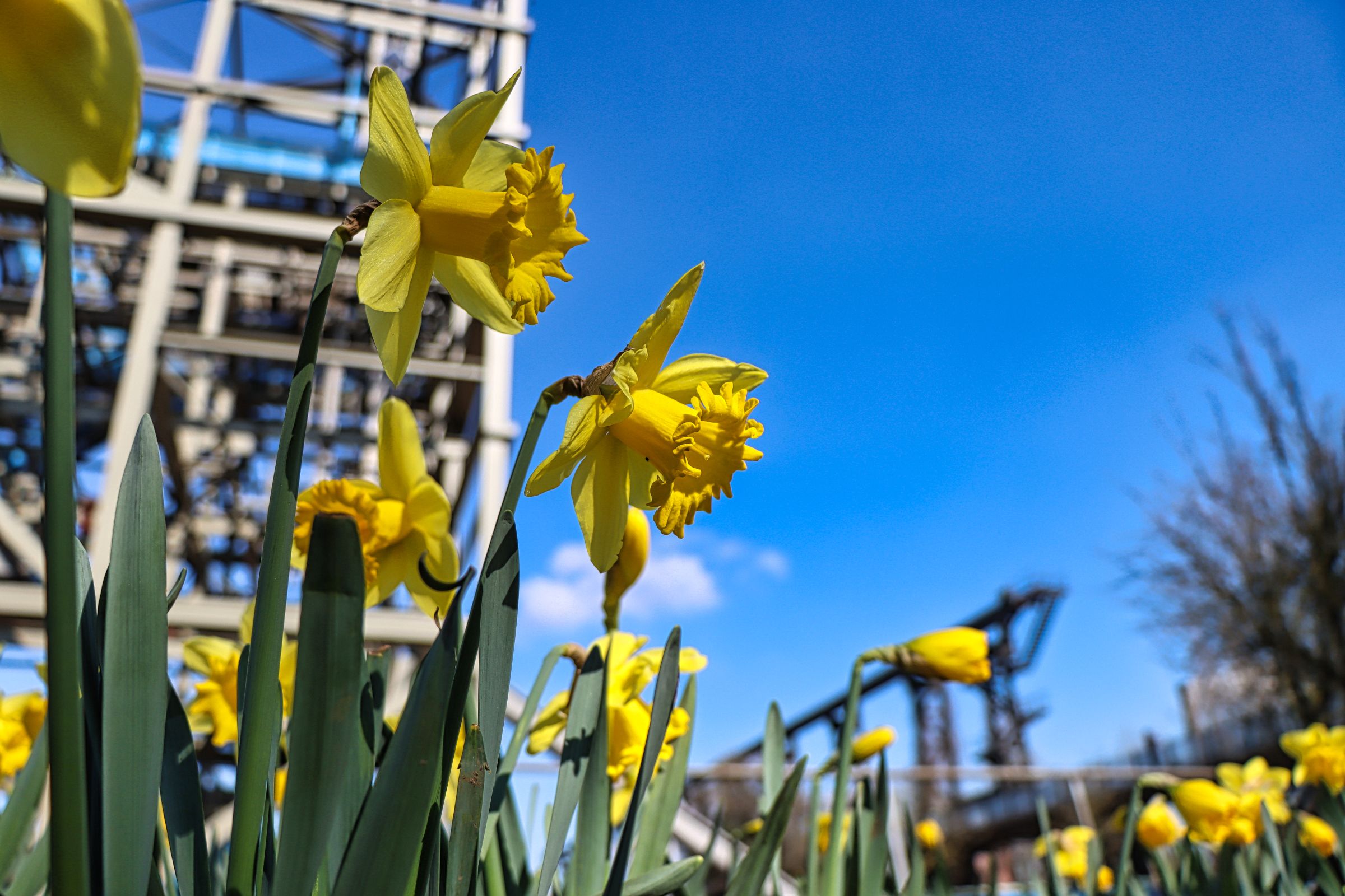 Auf dem Rückweg zum vorderen Teil des Parks bin ich dann nochmal durch die Sintergärten spaziert und habe selbst zwischen Industriekultur den Frühling entdecken können. Es ist schon irgendwie verrückt, daß auf einem Industriegelände heute die Narzissen blühen. Im Durchgang vom Bunkervorplatz zum Cowperplatz hängt seit ein paar Tagen auch die neue OpenAir Bildergallerie. Auch Kunst gibt’s also auf dem Gelände und wem das nicht genug ist, der klettert eben noch auf den Hochofen (ich dieses Mal nicht). Die Bilder des Beitrags und ein paar mehr gibt’s auch wieder bei Flickr und Google Photos.