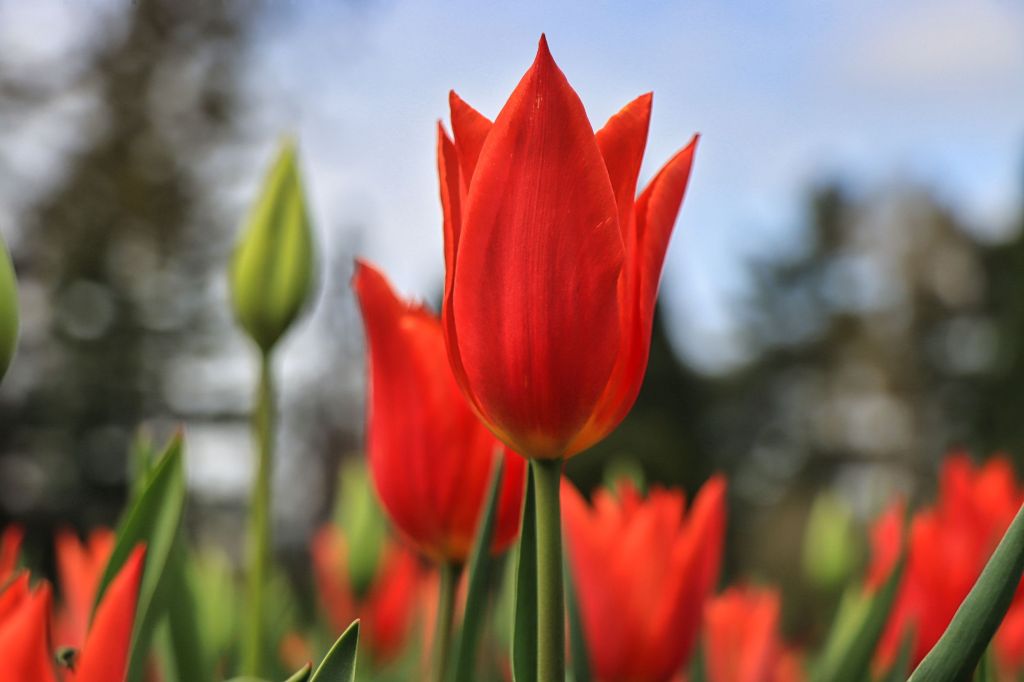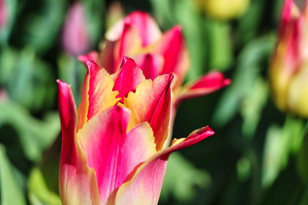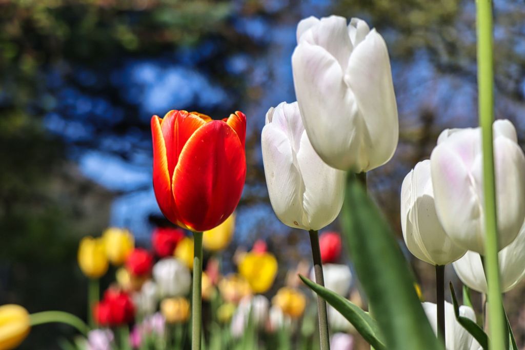 Wenn ich eines am Frühling mag, dann sind es, neben den angenehmeren Temperaturen, die bunten Farben, die das Wintergrau vertreiben. So bin ich in den letzten 14 Tagen überall da stehengeblieben, wo mir eine Tulpe, eine Kirschblüte oder ein Rapsfeld begegnet ist. Fangen wir an im Botanischen Garten meiner Heimatstadt Krefeld. Da noch kalte Nächte zwischen den sonnigen Tagen liegen, sind die Tulpen noch nicht alle geöffnet, aber einige haben es bereits geschafft.