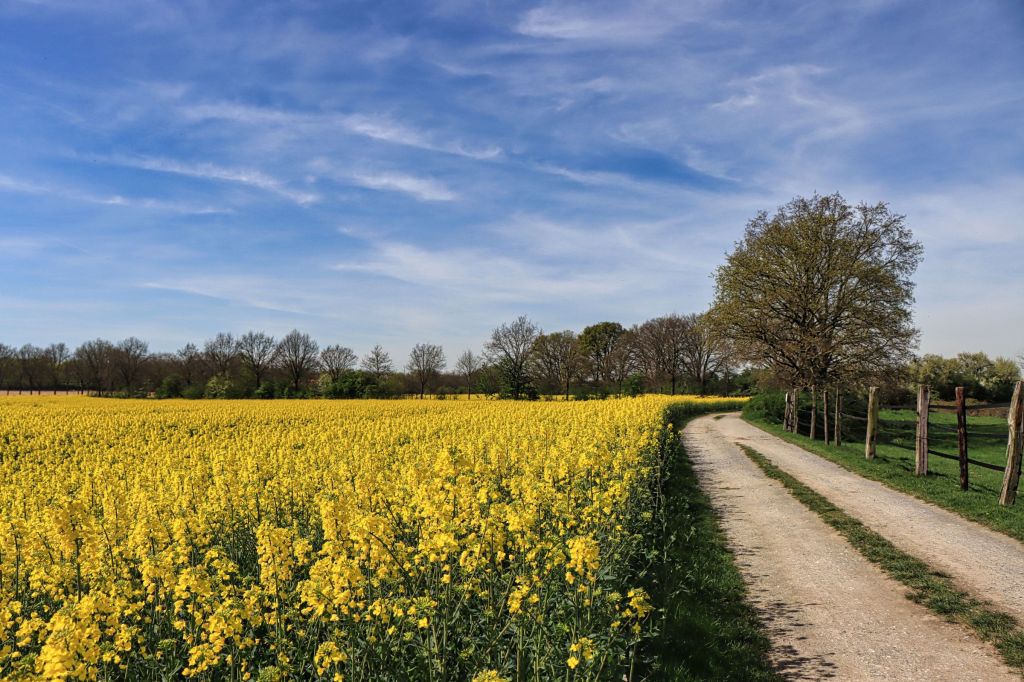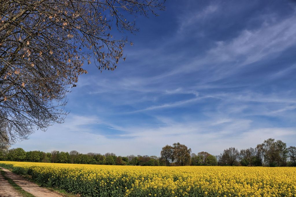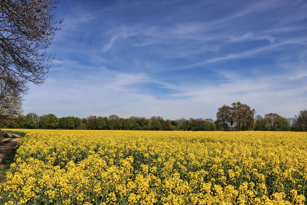 Als nächstes ging es dann aufs Rad, um Ausschau nach Rapsfeldern zu halten. Da die Bestellung eines Feldes ja bekanntlich jedes Jahr wechselt, sind auch die Rapsfelder jedes Jahr an einer anderen Stelle zu finden. Weder an der Mühle auf dem Egelsberg noch unmittelbar an der Uerdinger Rheinbrücke fanden sich dieses Jahr entsprechend (fotogene) Felder. Dafür bin ich auf der Duisburger Rheinseite (Nähe Mündelheim und Serm) und unweit des Elfrather Sees in Krefeld fündig geworden. Jetzt hat der Frühling endgültig begonnen.