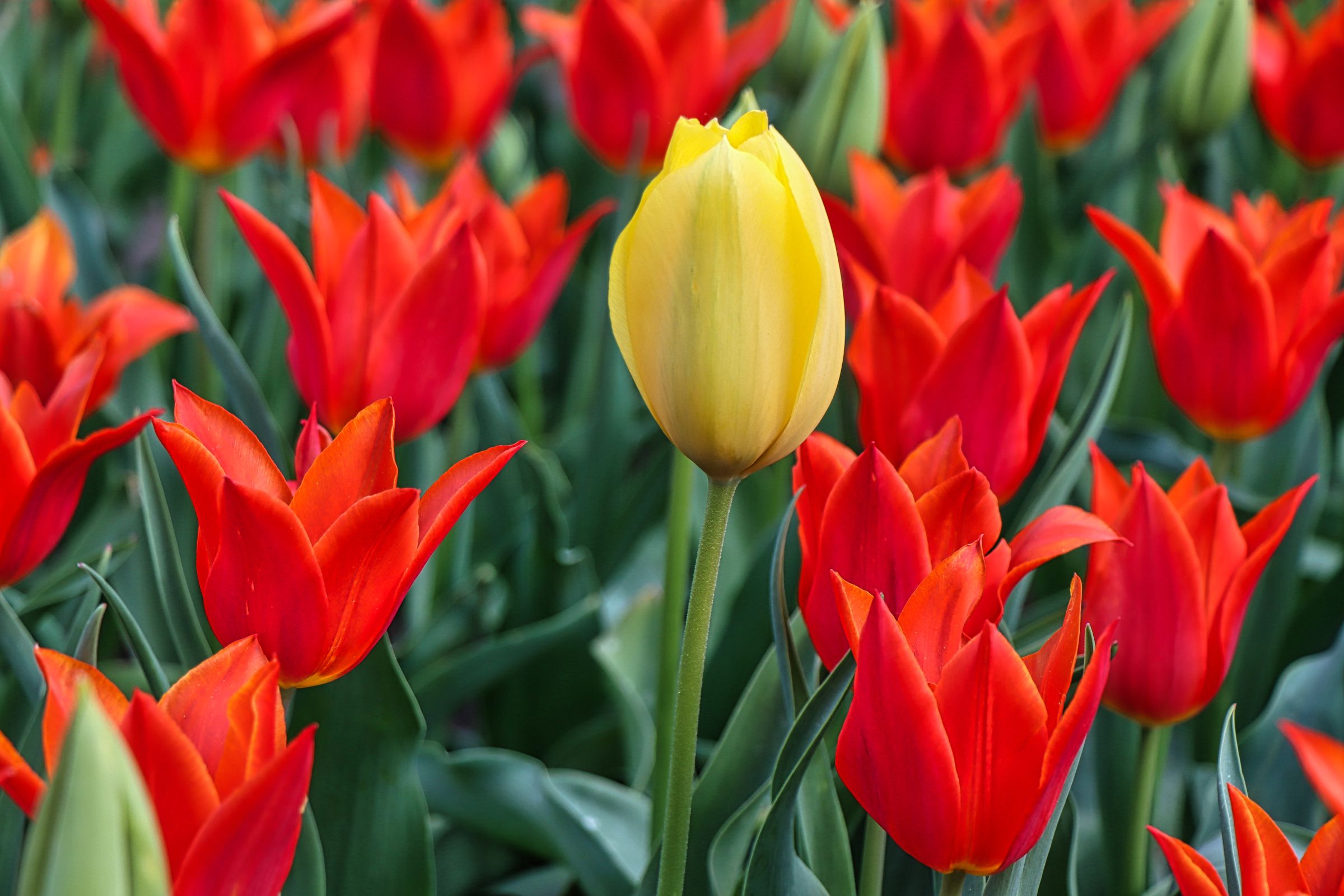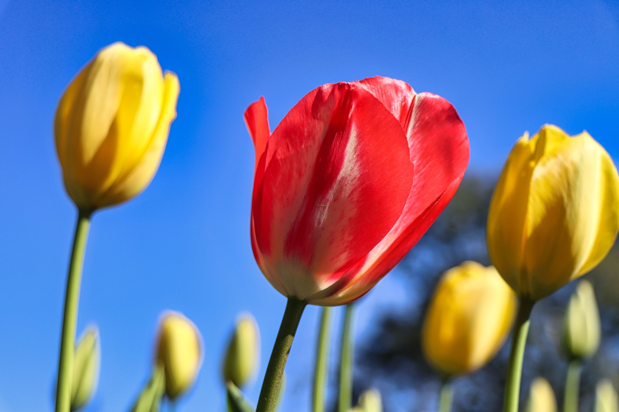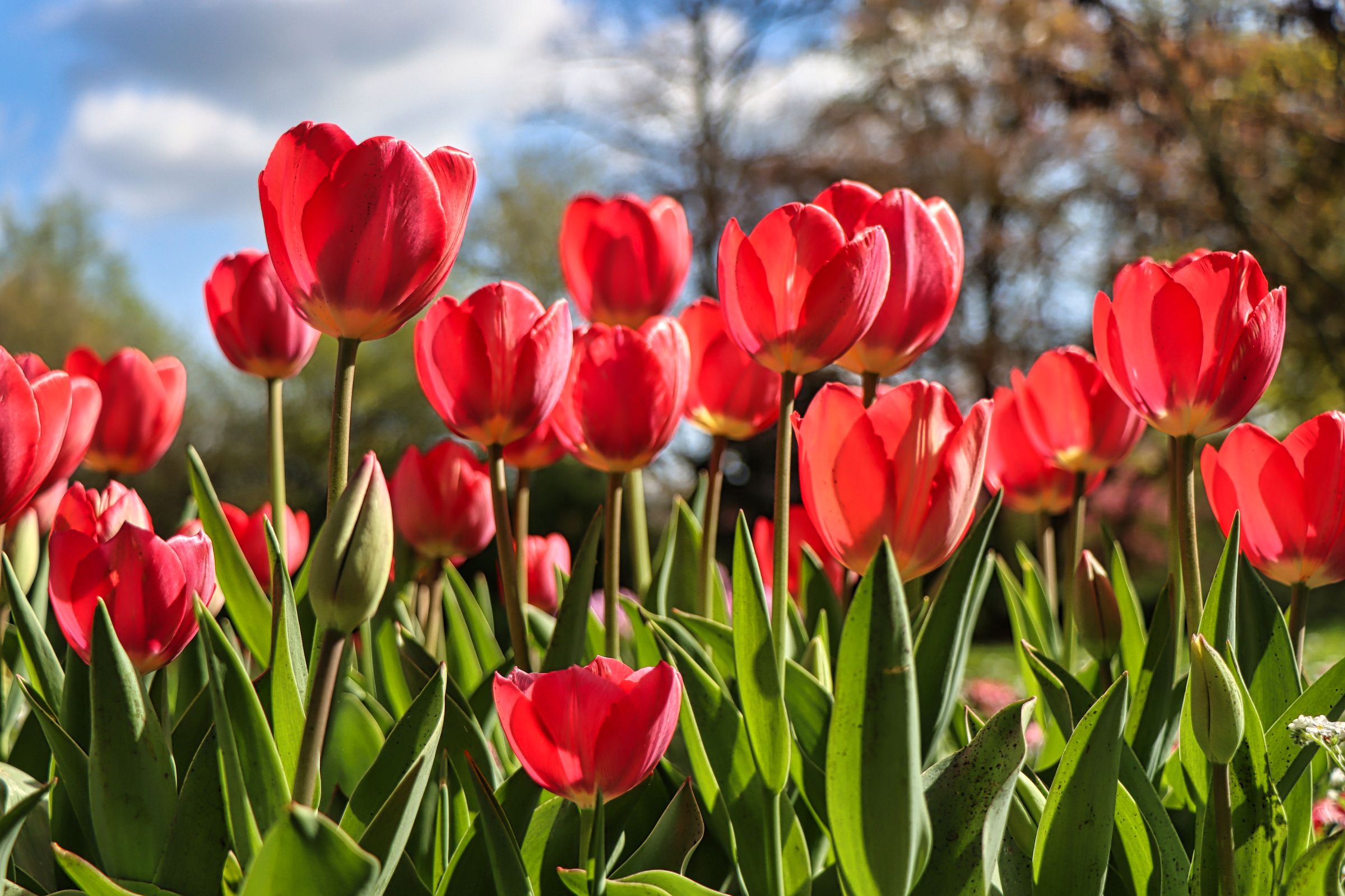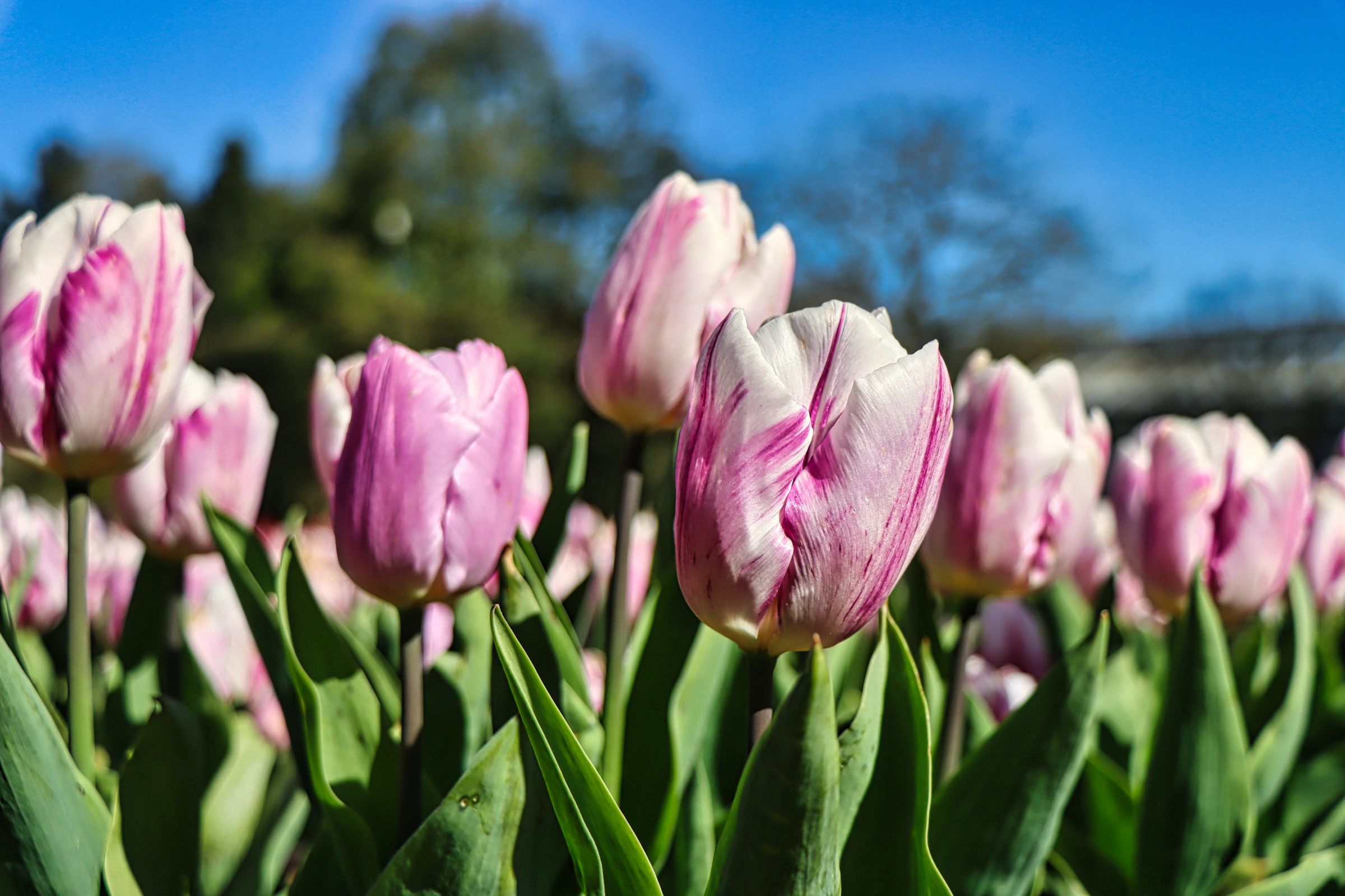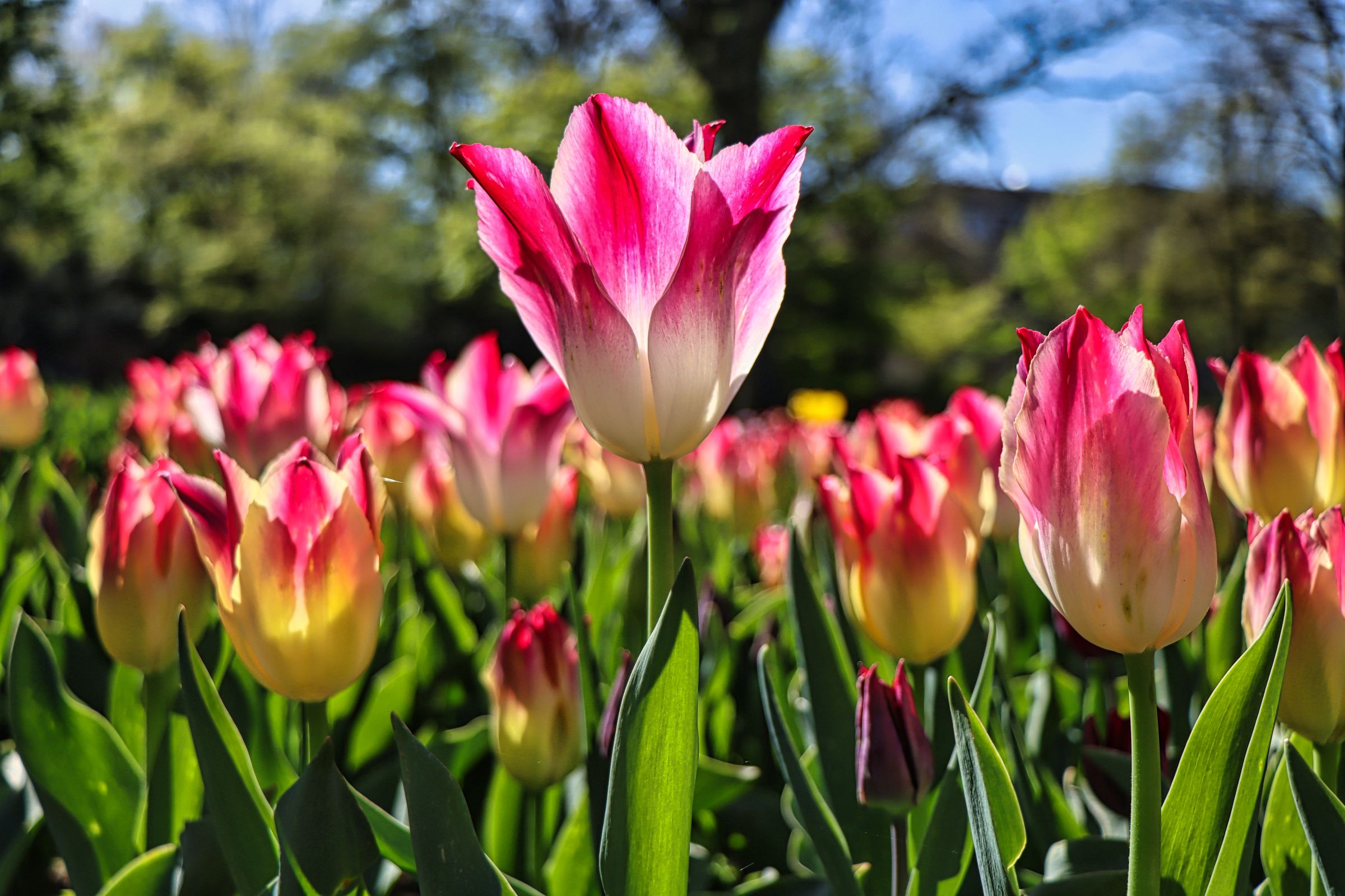 Wenn ich eines am Frühling mag, dann sind es, neben den angenehmeren Temperaturen, die bunten Farben, die das Wintergrau vertreiben. So bin ich in den letzten 14 Tagen überall da stehengeblieben, wo mir eine Tulpe, eine Kirschblüte oder ein Rapsfeld begegnet ist. Fangen wir an im Botanischen Garten meiner Heimatstadt Krefeld. Da noch kalte Nächte zwischen den sonnigen Tagen liegen, sind die Tulpen noch nicht alle geöffnet, aber einige haben es bereits geschafft.