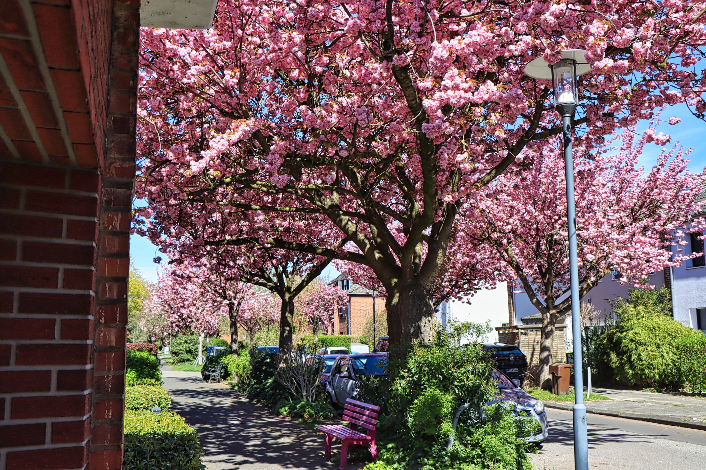 Fast zeitgleich, etwas später als im vergangenen Jahr, haben sich dann auch die Kirschblüten geöffnet. In Krefeld scharen sich die Fotografen rund um den Alexanderplatz sowie in der Waldhof- und der Gneisenaustraße. Und zu was? Zu Recht. Wer braucht da schon die Kirschblüte in Bonn? In diesem Jahr fand das Kirschblütenfest auf dem Alexanderplatz somit genau zur richtigen Woche statt. Für die Bilder vom Alexanderplatz vertröste ich euch jedoch ausnahmsweise auf den nächsten Blogbeitrag.