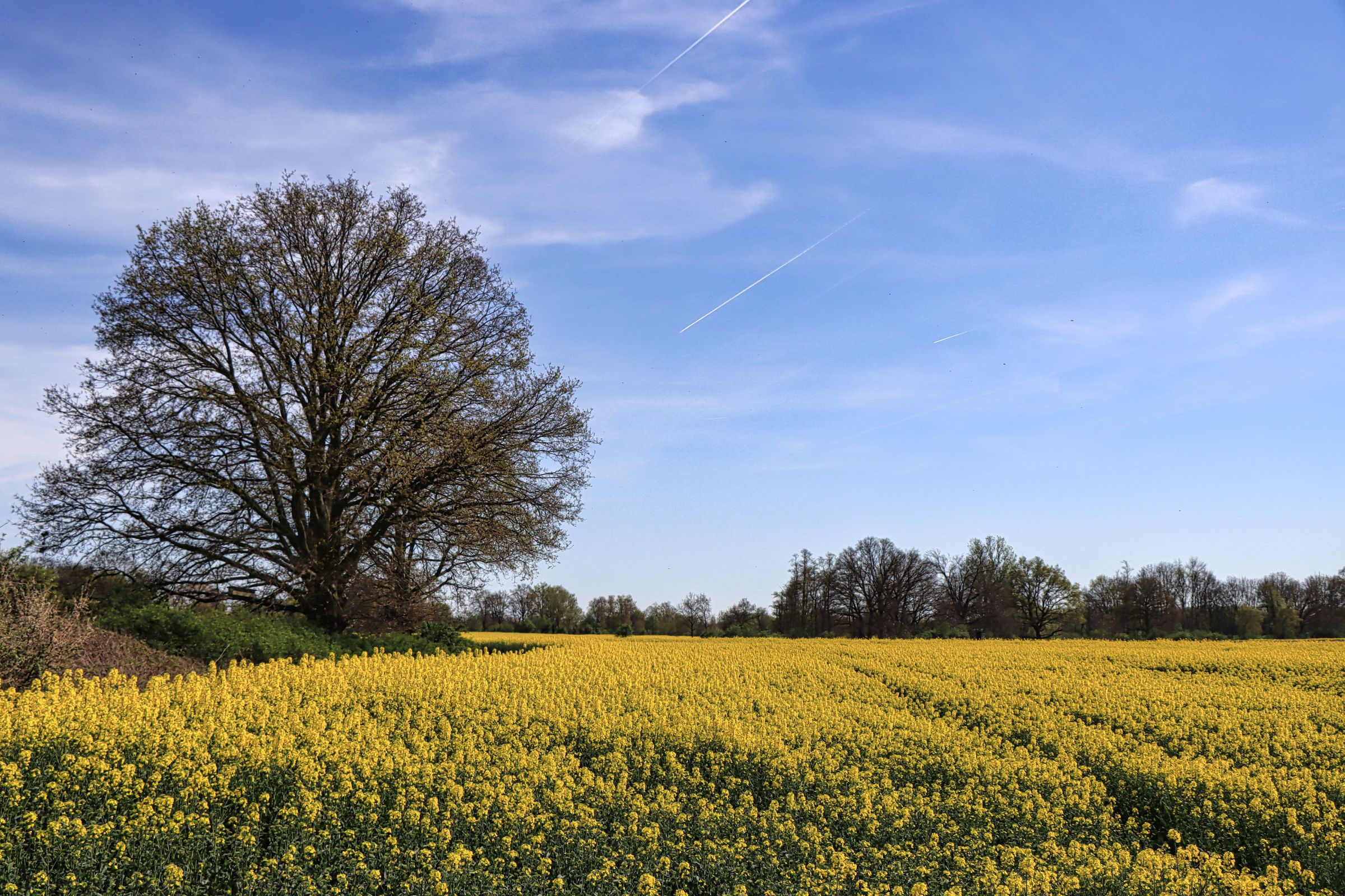 Als nächstes ging es dann aufs Rad, um Ausschau nach Rapsfeldern zu halten. Da die Bestellung eines Feldes ja bekanntlich jedes Jahr wechselt, sind auch die Rapsfelder jedes Jahr an einer anderen Stelle zu finden. Weder an der Mühle auf dem Egelsberg noch unmittelbar an der Uerdinger Rheinbrücke fanden sich dieses Jahr entsprechend (fotogene) Felder. Dafür bin ich auf der Duisburger Rheinseite (Nähe Mündelheim und Serm) und unweit des Elfrather Sees in Krefeld fündig geworden. Jetzt hat der Frühling endgültig begonnen.