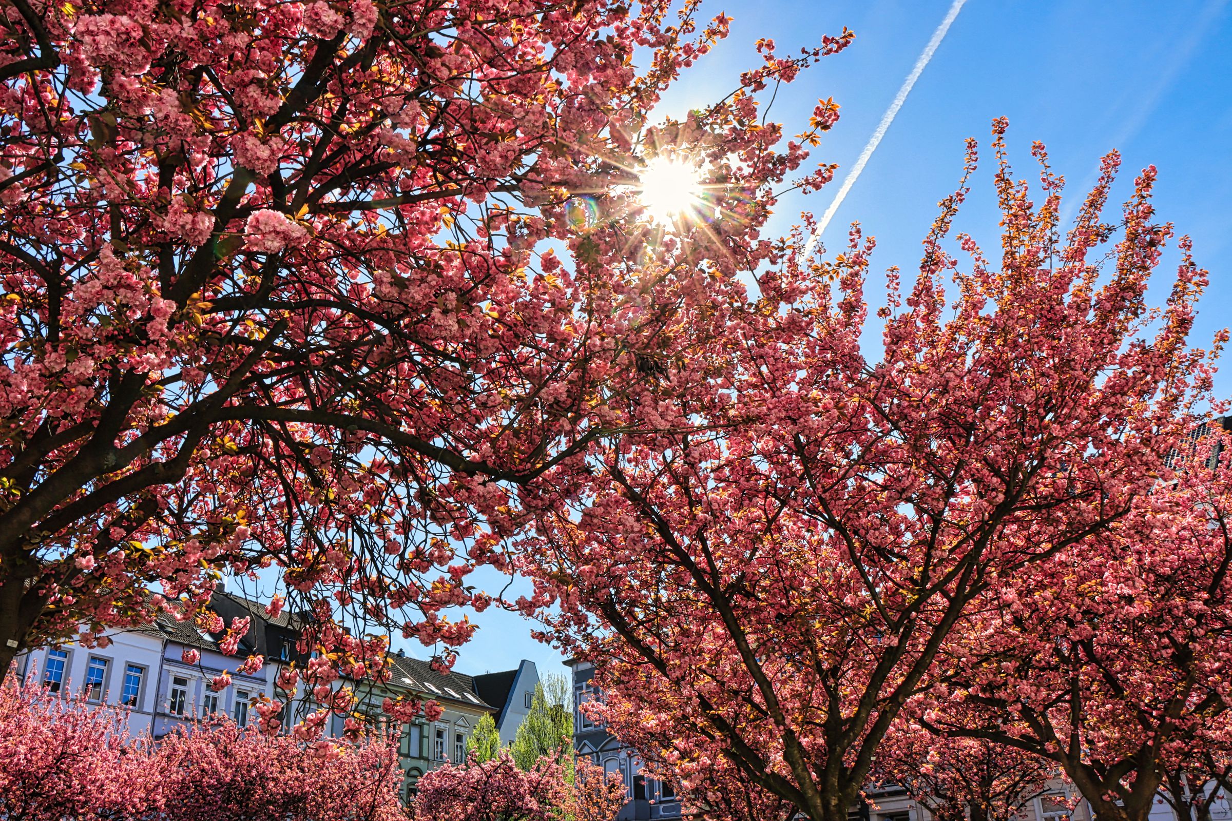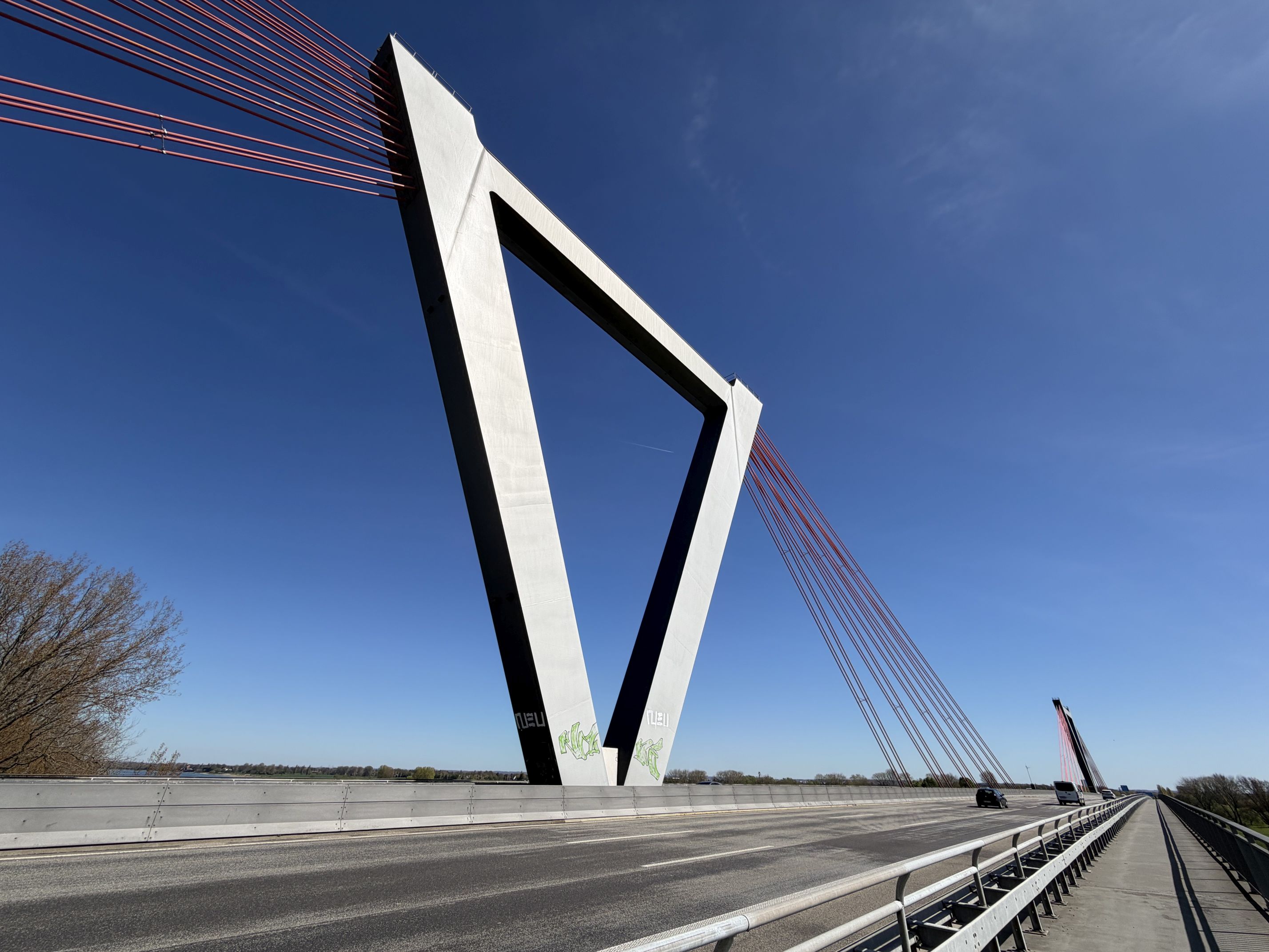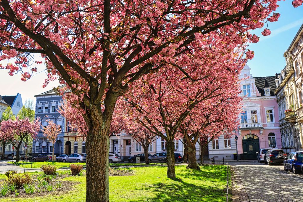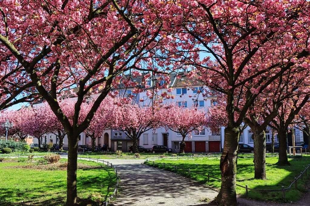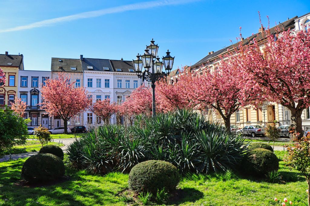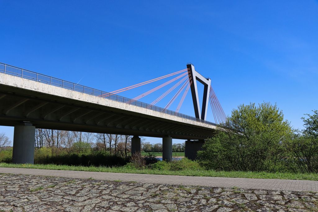 Wie ihr wißt, bin ich nicht der Radfahrer, der am Wochenende 100 km oder mehr runterreißt, aber als am Dienstag nach Ostern trotz Urlaub 😉 der Himmel strahlend blau war, habe ich mich kurzentschlossen mit dem Rad zu einer 44 km Runde aufgemacht. Nach einem morgendlichen Abstecher zum Krefelder Alexanderplatz (hier die versprochenen Kirschblütenbilder) ging es auf den Krefelder Radschnellweg in Richtung Krefeld Oppum. Von dort durch ein paar etwas verkehrsreichere Straßen, über Eisenbahn und Autobahn. Der Ausbau der A57, den man hier gut beobachten kann, erzeugte auch an dem Morgen einen gehörigen Stau.