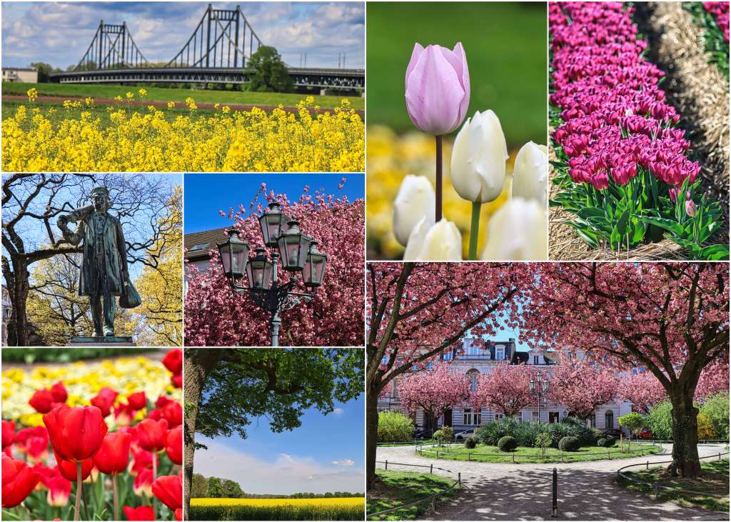 So langsam aber sicher wurde es bunt draußen. Ich bin zu Fuß quer durch die Stadt Krefeld und habe mich inspirieren lassen. Endlich habe ich mal Meister Ponzelar, die Figur eines Seidenwebers mit geschulterter Tuchrolle und Garnrollensack in der linken Hand, abgelichtet und war kurz vor dem Kirschblütenfest am Krefelder Alexanderplatz. Dann gab es einen zweiten Anlauf auf der Suche nach ein paar schönen Tulpenbildern. Entlang der Felder des Niederrheins wurde ich genauso fündig wie im Düsseldorfer Nordpark und im Essener Grugapark. Noch mehr Tulpen gab’s im Botanischen Garten Krefeld und dann war ich wieder mit dem Rad quer durch (fast) alle Rapsfelder rund um Krefeld und auf der Duisburger Rheinseite unterwegs.