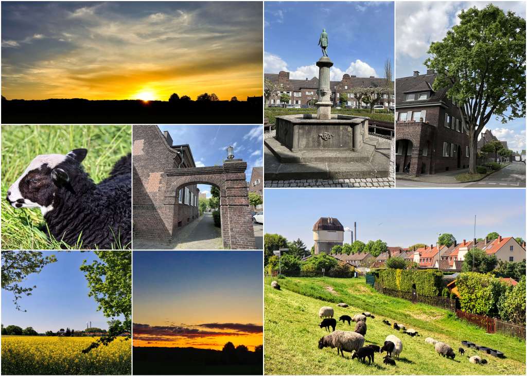Mehr zufällig entdeckte ich einen Artikel in der Zeitung zur Ter-Meer-Siedlung in Krefeld Uerdingen. Von der hatte ich noch nie gehört, Zeit das nachzuholen. Mit dem Rad war ich dann auch recht spontan in Hohenbudberg, was im Prinzip noch zu Krefeld gehört. Während des Frühstücks scrolle ich durch Facebook und sehe das Bild einer Schafsherde vor dem Hohenbudberger Wasserturm. Keine Frage, da mußte ich hin. Ebenso recht spontan habe ich versucht einen Sonnenuntergang an der Krefelder Stadtgrenze auf den Chip zu bekommen. Schließlich habe ich endlich mal wieder einen Spaziergang auf die Halde Hoheward in Angriff genommen, dieses Mal wieder über die Drachenbrücke.