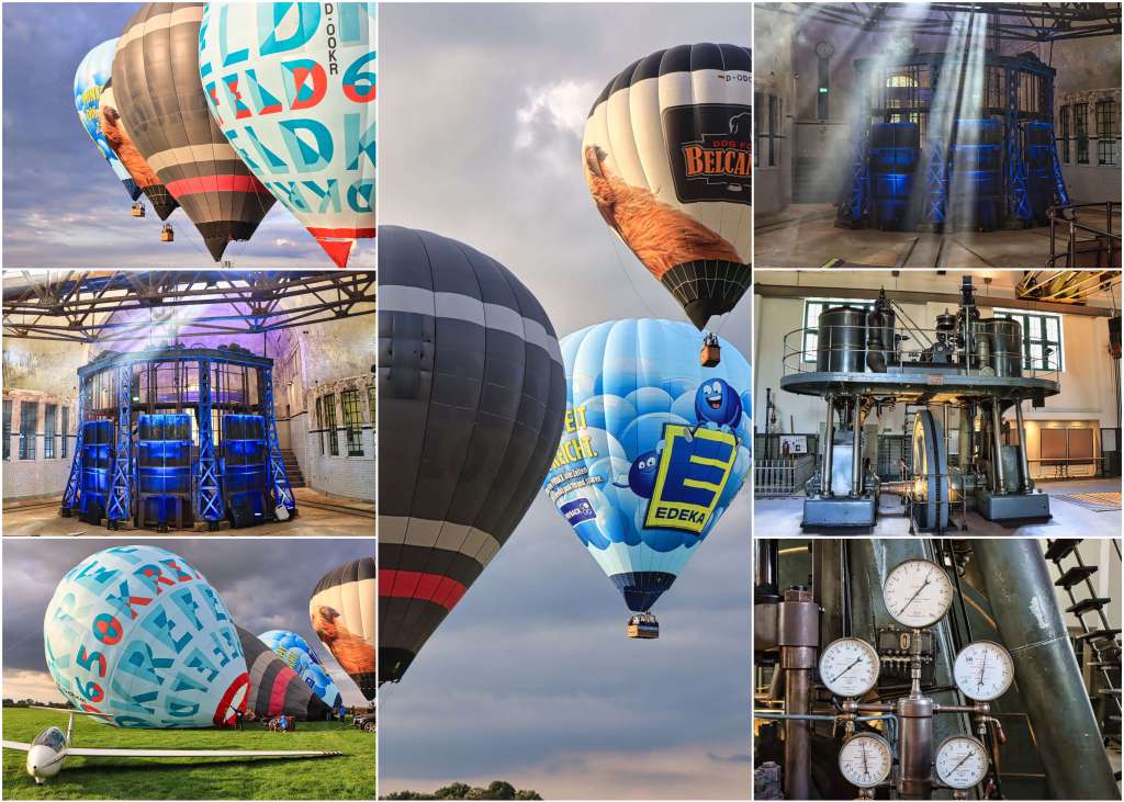 In Krefeld wurde nicht geflogen sondern gefahren und zwar bei der Wiederholung des Ballonfestivals. Ballonglühen am Abend und wetterbedingt ein Start am frühen Morgen (mein Wecker klingelte um 4:30 Uhr). Ganz spontan ging es dann nochmal zu einem Abendstart in den Zechenpark Friedrich Heinrich nach Kamp-Lintfort. Halde oder Kanal hieß es ein paar Tage später an der Schurenbachhalde in Essen und im Nordsternpark Gelsenkirchen. Last but not least war ich noch zu einer neuerlichen Fototour im alten Stadtbad Krefeld, mit Helm und Stirnlampe, falls es mal ganz plötzlich dunkel wird. Vorschrift ist Vorschrift.