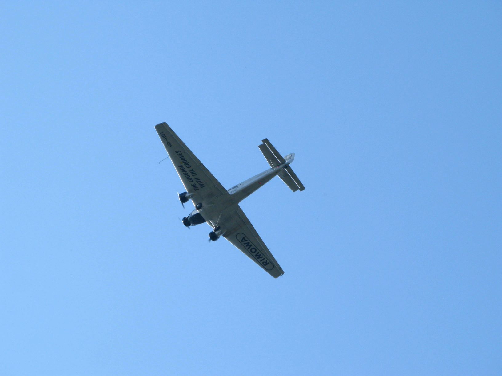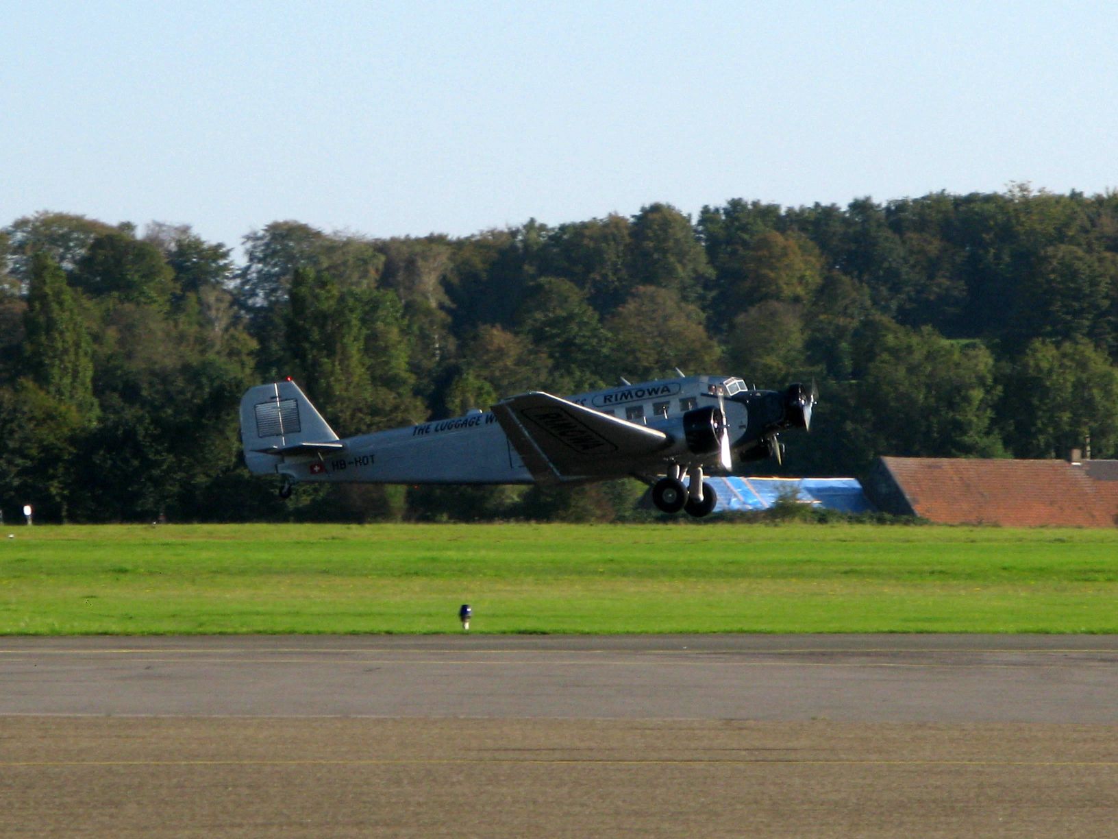 Während ich also rumfuchtel, fliegt bereits zum zweiten oder dritten Mal die gute Tante Ju über den Grugapark hinweg. Ob die Ju52 evt. vom Flughafen Mülheim/Essen aus startet? Ihr müßt wissen, das ist ein ganz kleiner Flughafen (mehr ein Verkehrslandeplatz), bei dem man als Besucher bis zu einer Absperrung direkt ans Flugfeld darf. Mit dem Flugzeug auf du und du (sozusagen). Also Abstecher auf’m Rückweg.
