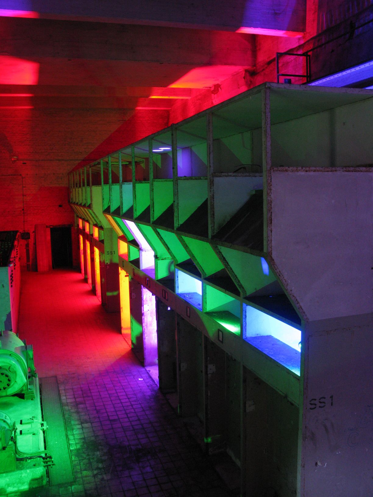 Dieses hier, gegenüber des Gasometers, ist z.B. auf den Rest eines alten Brückenbauwerks gerichtet und wer hindurchsieht entdeckt den Spruch „Why are you here and not somewhere else„? Tja, gute Frage :-D. Ich habe mal versucht diesen Spruch vor die Kamera zu bekommen und wer schon mal versucht hat mit einer Brille durch ein Fernglas zu gucken, weiß um die Schwierigkeit, daß das ein ziemliches Gehampel sein kann. Aber 10 Miuten Schweiß (warum mußte auch gerade da die Sonne scheinen) führten zu einem Ergebnis, das mir gefällt. Ziel dieser Fernrohre, ihr habt es euch sicherlich schon gedacht, ist nicht eine Halde, einen Berg oder sonstiges Kulturgut zu betrachten, sondern die künstlerische Idee, die dahinter steckt. Hier eben den o.g. Spruch zu entdecken und das auch ohne 50 ct.