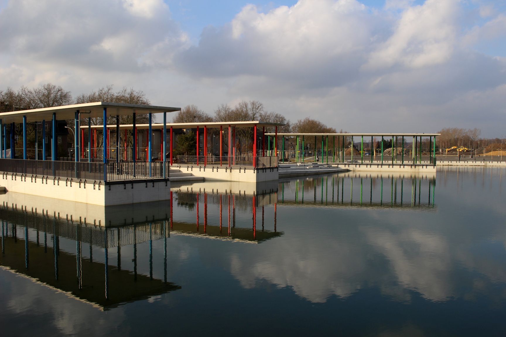 Im Übrigen hat der Rhein-Herne-Kanal (und damit auch die nahe verlaufende Emscher) gefühlt ca. alle 500 Meter eine Brücke (zumindest auf diesem Teilstück in Oberhausen). Einige davon überqueren auch gleich noch die unweit gelegene Autobahn A42. Und unter den Brücken, da geht’s gemütlich zu. Wenn gerade kein großes Schiff vorbeischippert, dann ist es vielleicht diese (oder eine andere) Schwanenfamilie bei ihrem Wochenendausflug. Ich konnte nicht anders als die Kamera draufzuhalten auch wenn ich ganz kritisch von den Schwaneneltern dabei beobachtet wurde :-).
