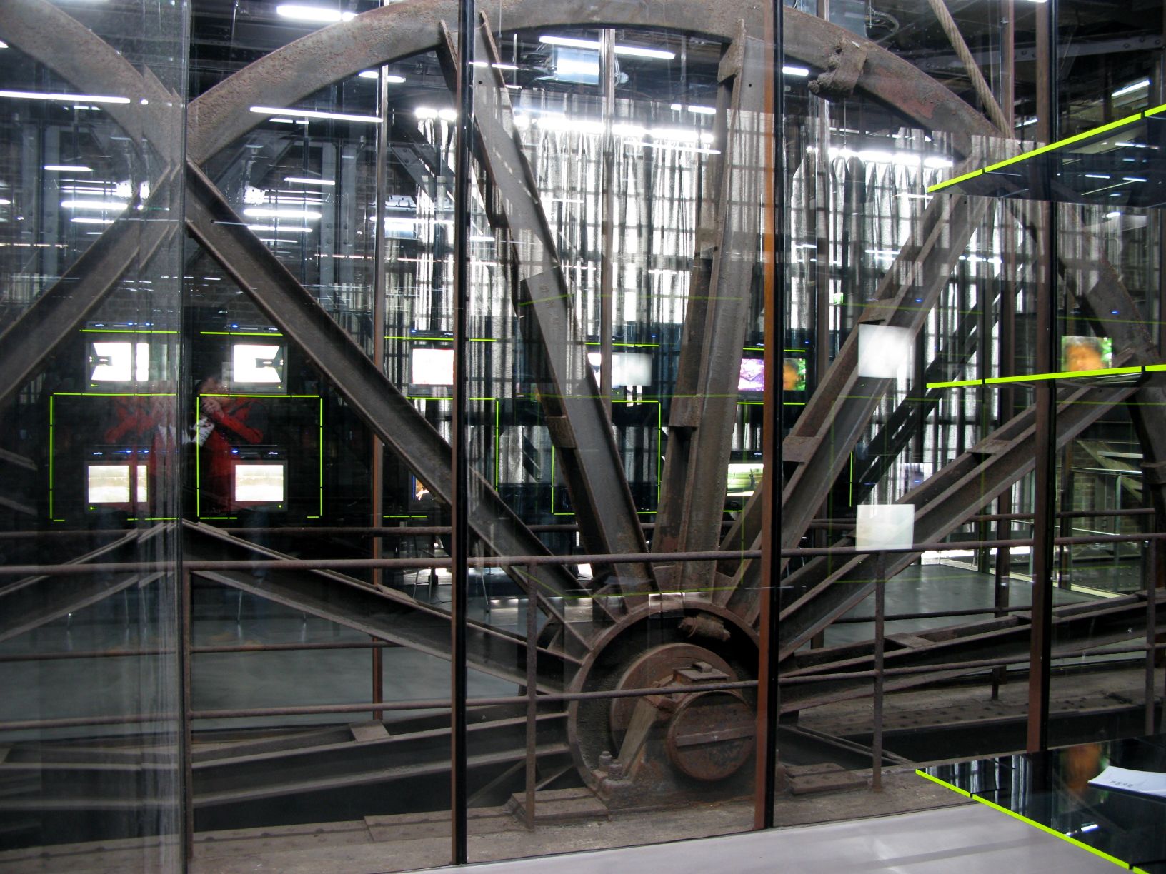 Dieses hier, gegenüber des Gasometers, ist z.B. auf den Rest eines alten Brückenbauwerks gerichtet und wer hindurchsieht entdeckt den Spruch „Why are you here and not somewhere else„? Tja, gute Frage :-D. Ich habe mal versucht diesen Spruch vor die Kamera zu bekommen und wer schon mal versucht hat mit einer Brille durch ein Fernglas zu gucken, weiß um die Schwierigkeit, daß das ein ziemliches Gehampel sein kann. Aber 10 Miuten Schweiß (warum mußte auch gerade da die Sonne scheinen) führten zu einem Ergebnis, das mir gefällt. Ziel dieser Fernrohre, ihr habt es euch sicherlich schon gedacht, ist nicht eine Halde, einen Berg oder sonstiges Kulturgut zu betrachten, sondern die künstlerische Idee, die dahinter steckt. Hier eben den o.g. Spruch zu entdecken und das auch ohne 50 ct.