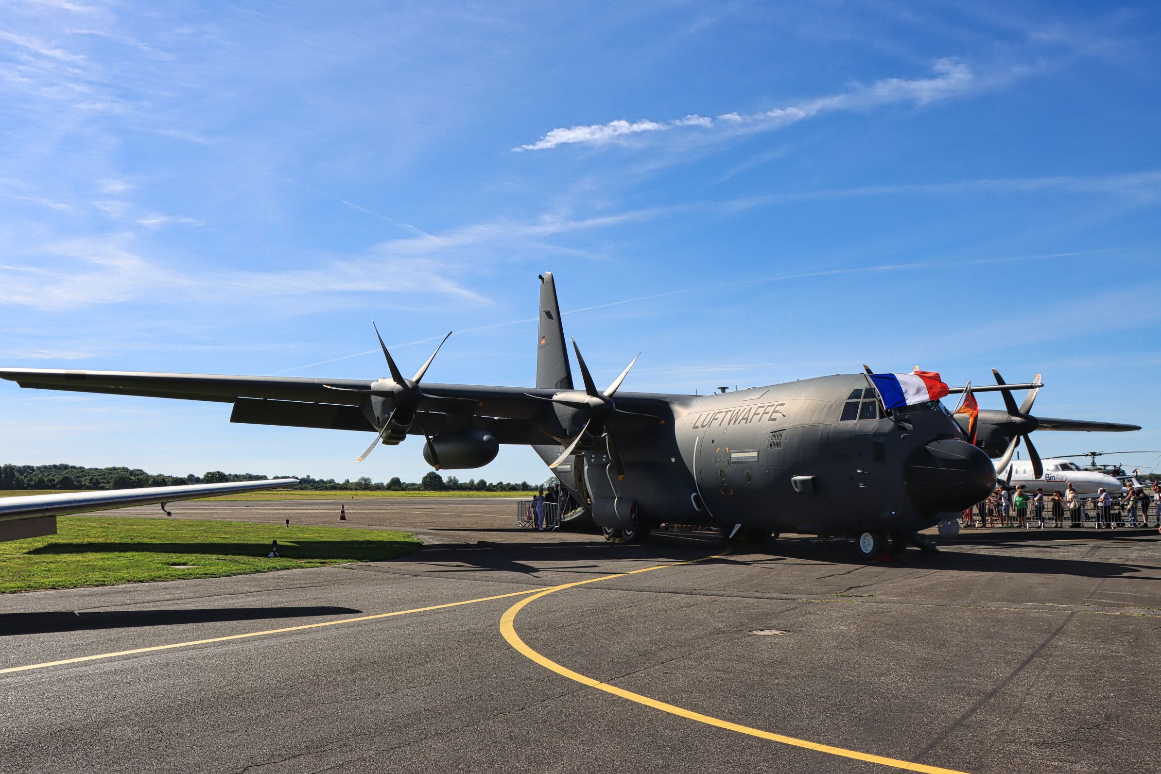 Offiziell heißt er FEM, also Flughafen Essen Mülheim und nicht umgekehrt, wie ich ihn immer genannt habe. Vielleicht weil sich FME so schlecht in einem Wort aussprechen läßt. Weil der Ort am 25. August 1925 offiziell seine Flughafenrechte als genehmigter Notlandeplatz erhielt, wurde der Flughafen dieses Jahr 100 Jahre alt. Und was macht man, wenn man 100 wird? Man feiert und genau das hat der Flughafen am vorletzten Wochenende gemacht. Und wenn man feiert, kommen Gäste, ganz viele Gäste. Voll wurde es bereits vor 11.00 Uhr, als sich die ersten Besucher vor dem Tor einfanden und richtig voll wurde es, als sich die Tore dann schließlich öffneten.