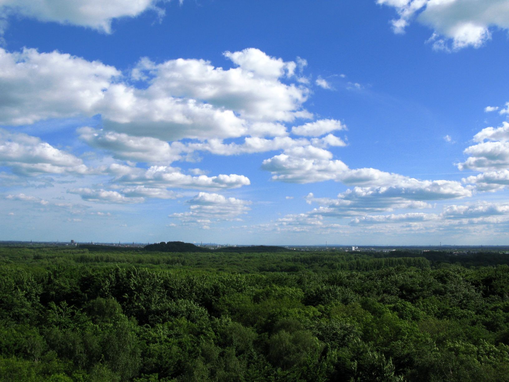 Letztes hätte ich fast einen Höhenkoller bekommen. Ich bin auf 92 Meter hoch. Wo? In Krefeld. Wer hätte gedacht, daß man in Krefeld 92 Meter hoch steigen kann. Der Hülser Berg ist mit sagenumwobenen 63 Metern die höchste natürliche Erhebung der Stadt. Nun wäre der Hügel eigentlich kaum einer weiteren Erwähnung wert, wenn es nicht ganz oben noch den Johannesturm (29 m, 163 Stufen) gäbe. Er gewährt einen weiten Blick über den Niederrhein- und sogar bis ins Ruhrgebiet, vorausgesetzt man klettert rauf. Als ich letztens mal wieder aus dem Ruhrpott auf dem Weg nach Hause war, dachte ich so … blauer Himmel und Sonnenschein – Yeah, das mußt du ausnutzen. Also ab auf’n Turm, Fotos machen! Was da rausgekommen ist, seht ihr auf den nachfolgenden Bildern.