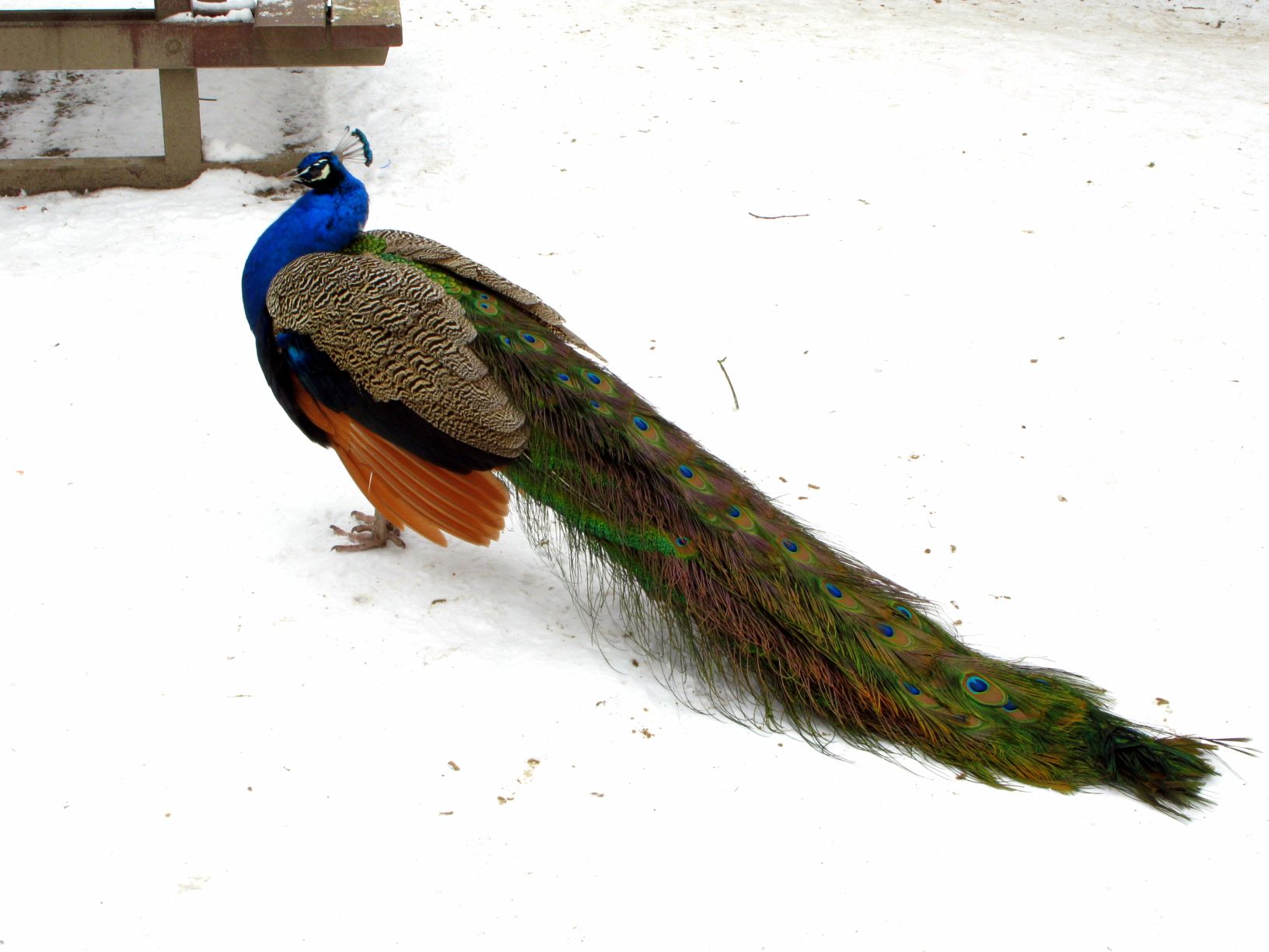 Dafür waren die Sonnenbänke aus irgendeinem Grund heute frei. Ich habe erst einmal die Schakkeline ihre Tasche hingestellt und dann mein Handtuch draufgelegt, hoffe die Reservierung hält bis Mai 😉 . Nach knapp zwei Stunden wurde es dann aber trotz dicker Montour frisch, die Nase war rot gefroren und selbst das Brötchenähnliche Gebäck in meiner Tasche wurde langsam hart. Nur dem Pfau, der sich aus dem benachbarten Kaisergarten auf den Weg gemacht hatte, ging es anscheinend gut. Also ab zurück ins Auto, Sitz- und Lenkradheizung an und ab nach Hause. Bilder … wie immer … Flickr, Google+ (Picasaweb) … zu Sevenload lade ich nichts mehr hoch (aus Gründen).