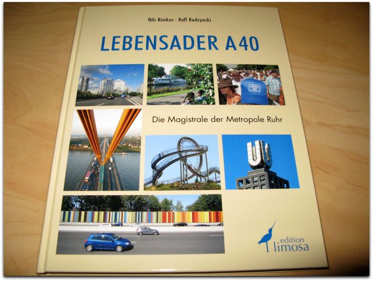 Sie ist die Lebensader des Ruhrgebiets, auf ihr stand im Kulturhauptstadtjahr 2010 die längste Picknicktafel der Welt (Still-Leben) und ich kenne sie auch unter dem Namen Ruhrschnellweg. Gemeint ist eine der meistbefahrensten Autobahnen, die Autobahn 40 – kurz A40. Dieser Autobahn ist jetzt ein Buch gewidmet worden „Lebensader A 40 – Die Magistrale der Metropole Ruhr“.