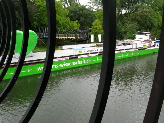 Vor ein paar Tagen lag mal wieder die MS Wissenschaft im Duisburger Innenhafen. Die MS Wissenschaft ist ein Binnen- und Ausstellungsschiff, gefördert durch das Bundesministerium für Forschung Technologie und Raumfahrt. Thema dieses Jahr Zukunftsenergie. Man erfährt etwas über die Wind- und Solarenergie, aber auch über Wasserstoffproduktion, wie man Energie speichern kann und wie die Technik auch in Wohnviertel integriert werden kann. Die weiteren Stationen der Schiffstour bekommt ihr hier.