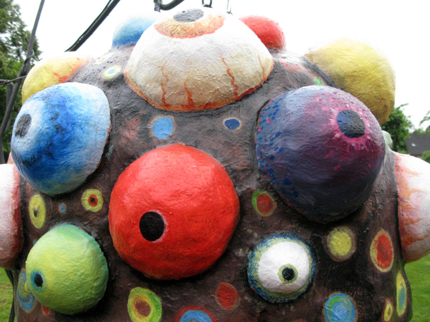 Auf dem Ehrenhof tummelte sich eine Herde seltsamer Röhren und ein Schäfer, der versuchte diese Röhrenwesen zu bändigen, im „Archiv des Weltensammlers“ konnte man unter komische überdimensionale Hüte klettern und bekam in jedem „Hut“ eine andere Ausstellungswelt auf ganz kleinem Raum zu sehen. Während gerade noch Klavierklänge des „Klavierzaubers“ zu hören waren, lief plötzlich ein Elefant über den Ehrenhof. Zwei Künstler auf Stelzen steckten in „Jumbo“ und erweckten die Illusion zum Leben.